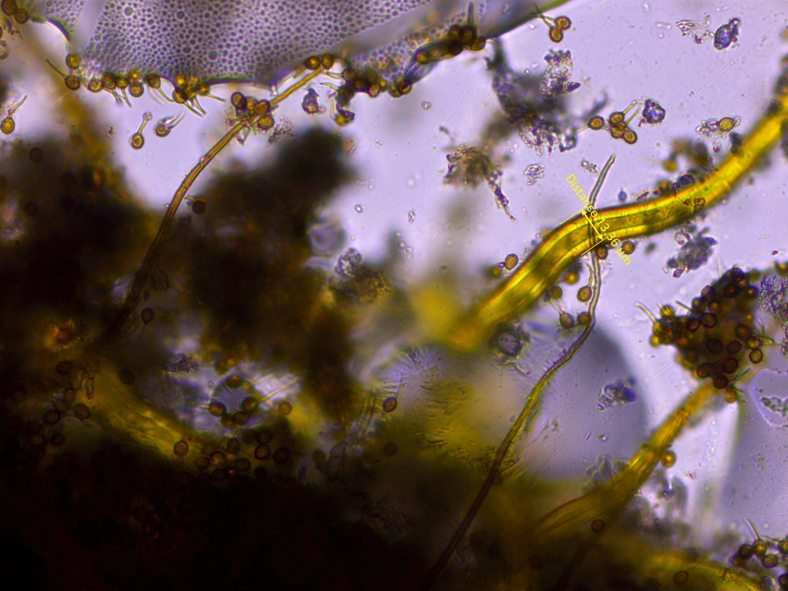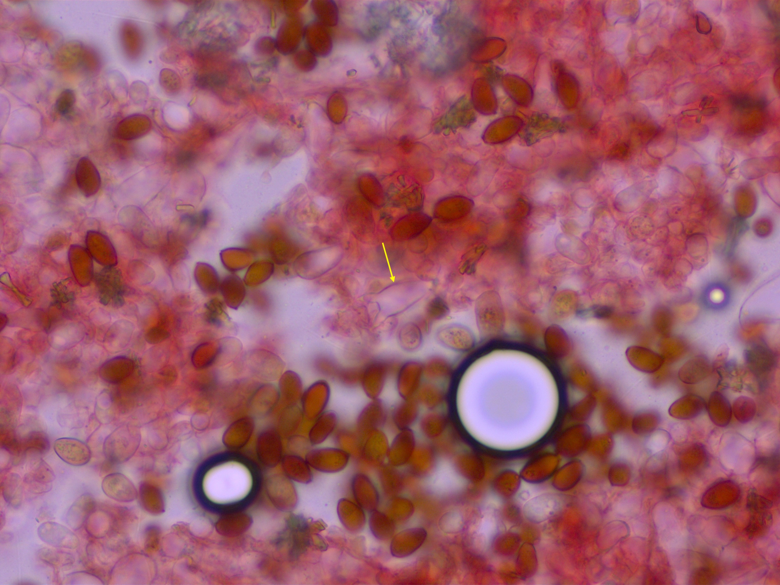 Dann ein Risspilz. Mit dem struppigen Hut hatte ich schon den Verdacht, dass es Richtung Inocybe lacera gehen wird. Und tatsächlich: