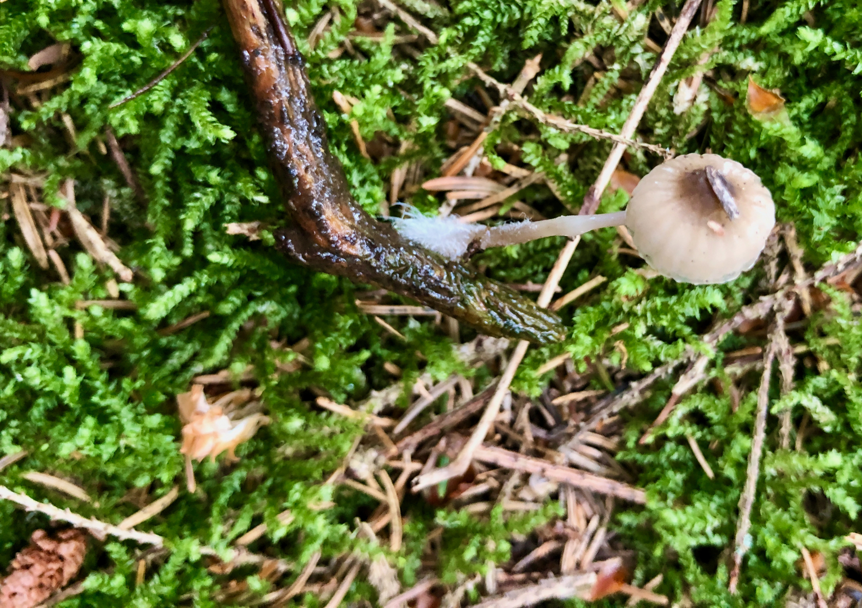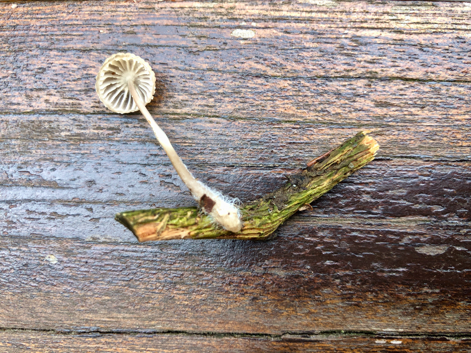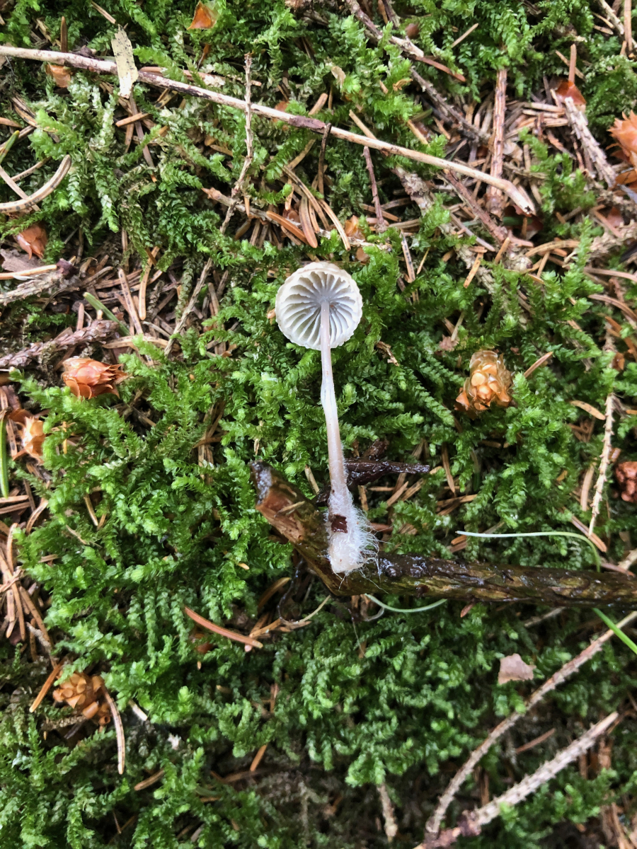 am Wochenende fanden wir diesen Pilz, von dem wir zunächst annahmen, dass es sich um eine Mycena handelt. Da sind wir uns nicht mehr sicher. Aber auf welchen Namen der statt dessen hören könnte, ist ebenfalls r unklar.
