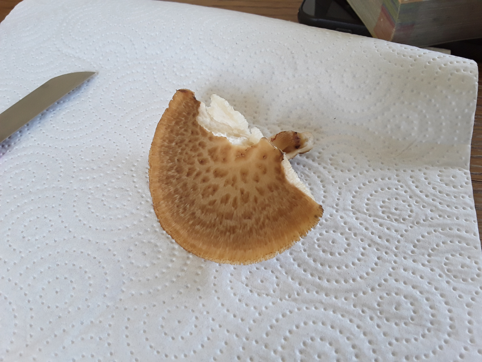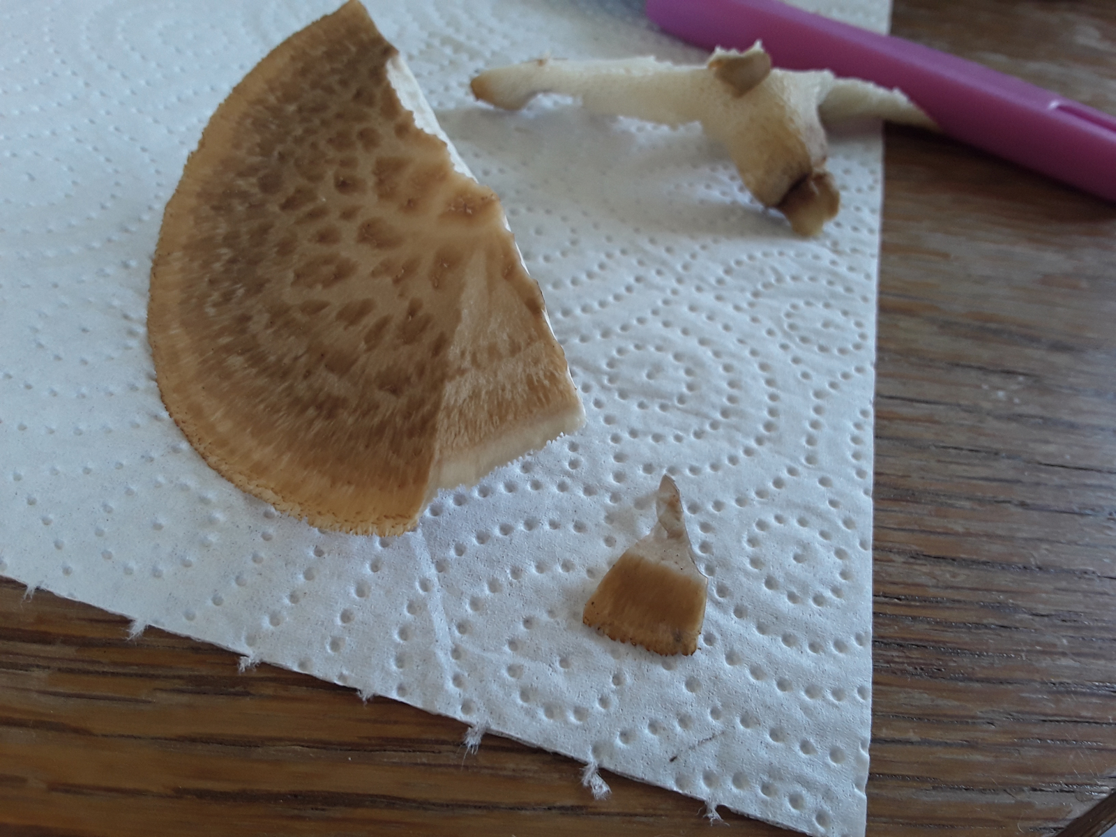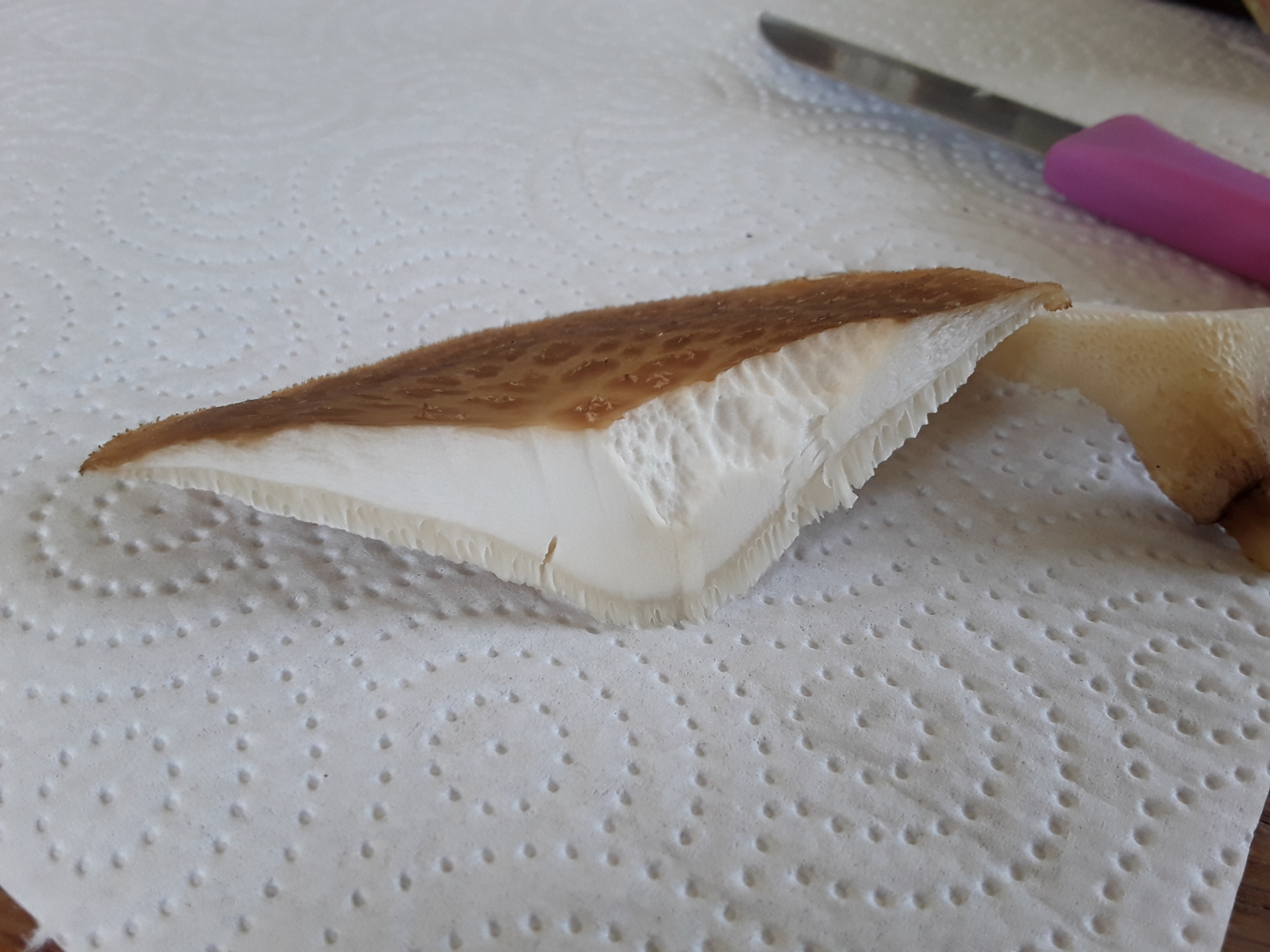 Leider hatte ich kein Messer dabei und musste ihn abziehen, ging sehr schwer deswegen ist ein Teil abgebrochen 😥