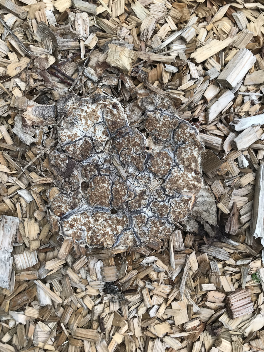 Kurz zur Beruhigung und Ergänzung: Diese Schleimpilze sind völlig harmlos. Da müssten die Kids das Zeug schon in großen Mengen aufessen, daß es auch nur Ansätze geringer Gesundheitsgefährdungen gibt. Der Holzschredder selbst ist vermutlich giftiger als die Myxos darauf (insbesondere, wenn da Holz von Arten wie Robinie, Eibe, Götterbaum usw. verwurstet wurde).