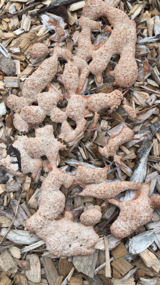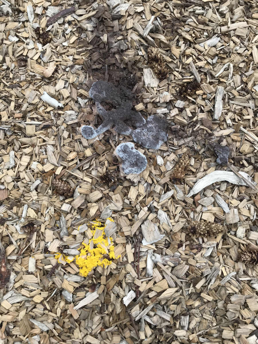Kurz zur Beruhigung und Ergänzung: Diese Schleimpilze sind völlig harmlos. Da müssten die Kids das Zeug schon in großen Mengen aufessen, daß es auch nur Ansätze geringer Gesundheitsgefährdungen gibt. Der Holzschredder selbst ist vermutlich giftiger als die Myxos darauf (insbesondere, wenn da Holz von Arten wie Robinie, Eibe, Götterbaum usw. verwurstet wurde).