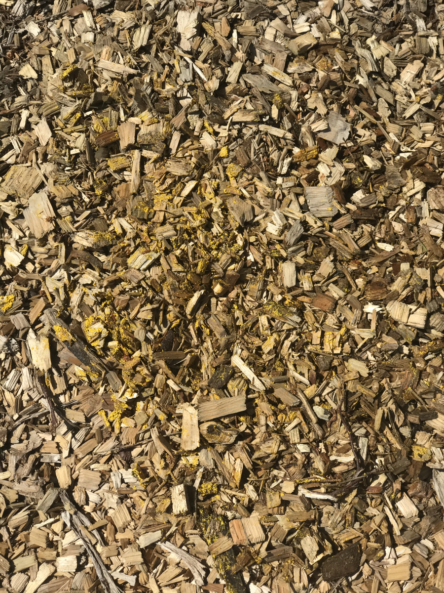 Pilze/ Sporen auf Hackschnitzeln eines Spielplatzes