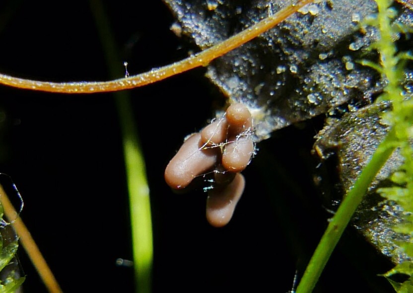 Das hat prompt geklappt, habe eben gerade mal 5min im Garten gereuselt, und gleich einige Schleimer aufgespürt. Die Fotos sind, gelinde gesagt, sch...., und sie werden sich wahrscheinlich jeglichem vernünftigen Bestimmungsversuch entziehen, aber ich wollte sie trotzdem zeigen. Einfach, weil es wirklich toll ist, sowas ziemlich leicht und innerhalb von Minuten im eigenen Garten zu finden, wenn man nur richtig hinschaut! Was wird man da erst finden, wenn man sich viel Zeit nimmt!?!