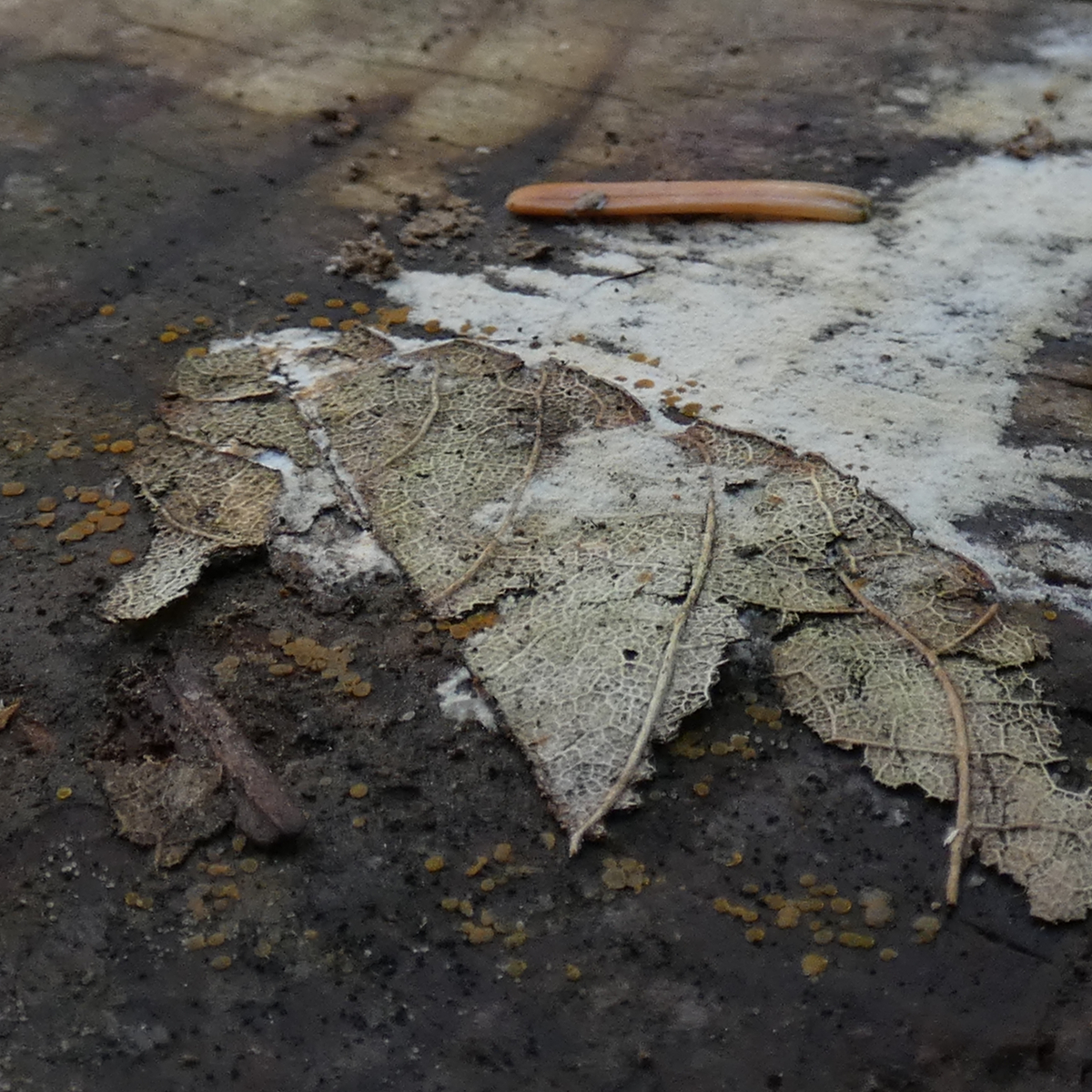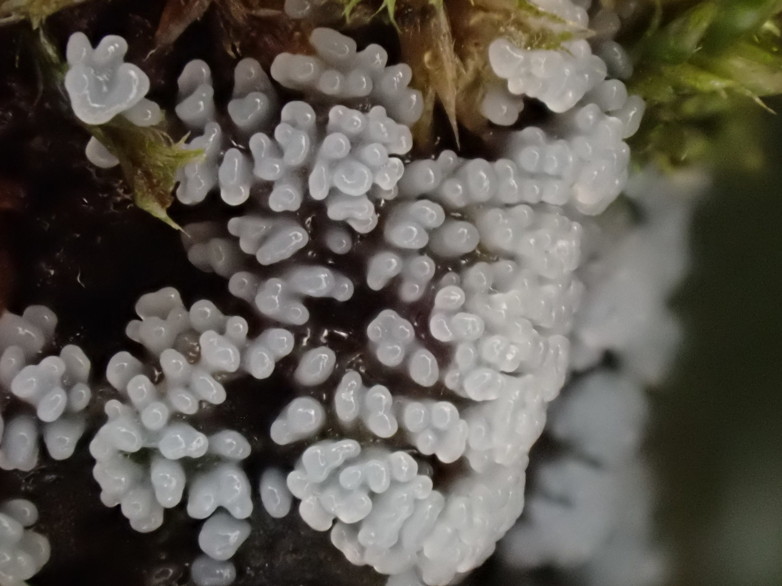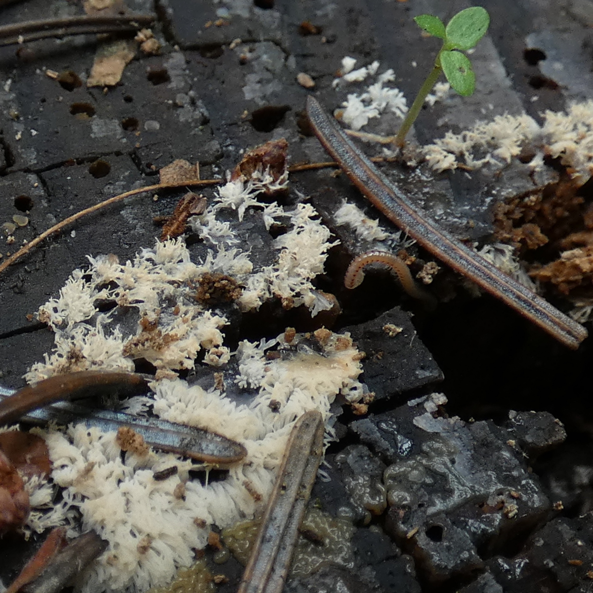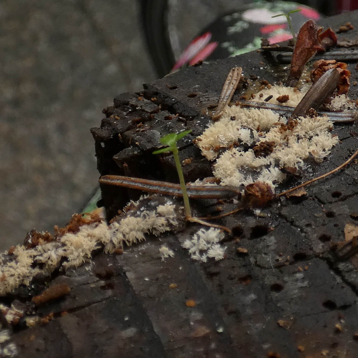 4. Hier sieht man (im unteren Teil des Bildes) noch - oder schon - den Schleim. Ob es die Schleimform dieses Schleimpilzes ist, oder mir da noch eine weitere Spezies untergekommen ist, weiß ich allerdings nicht.