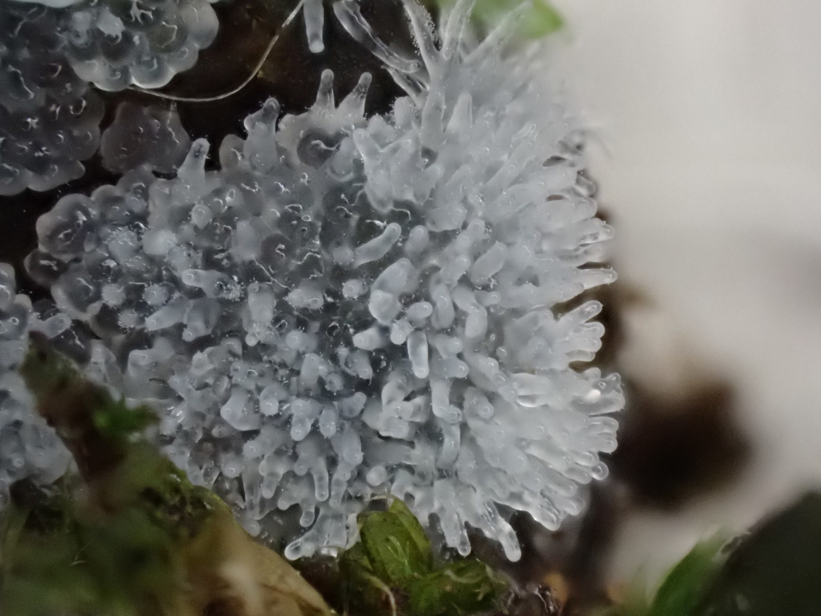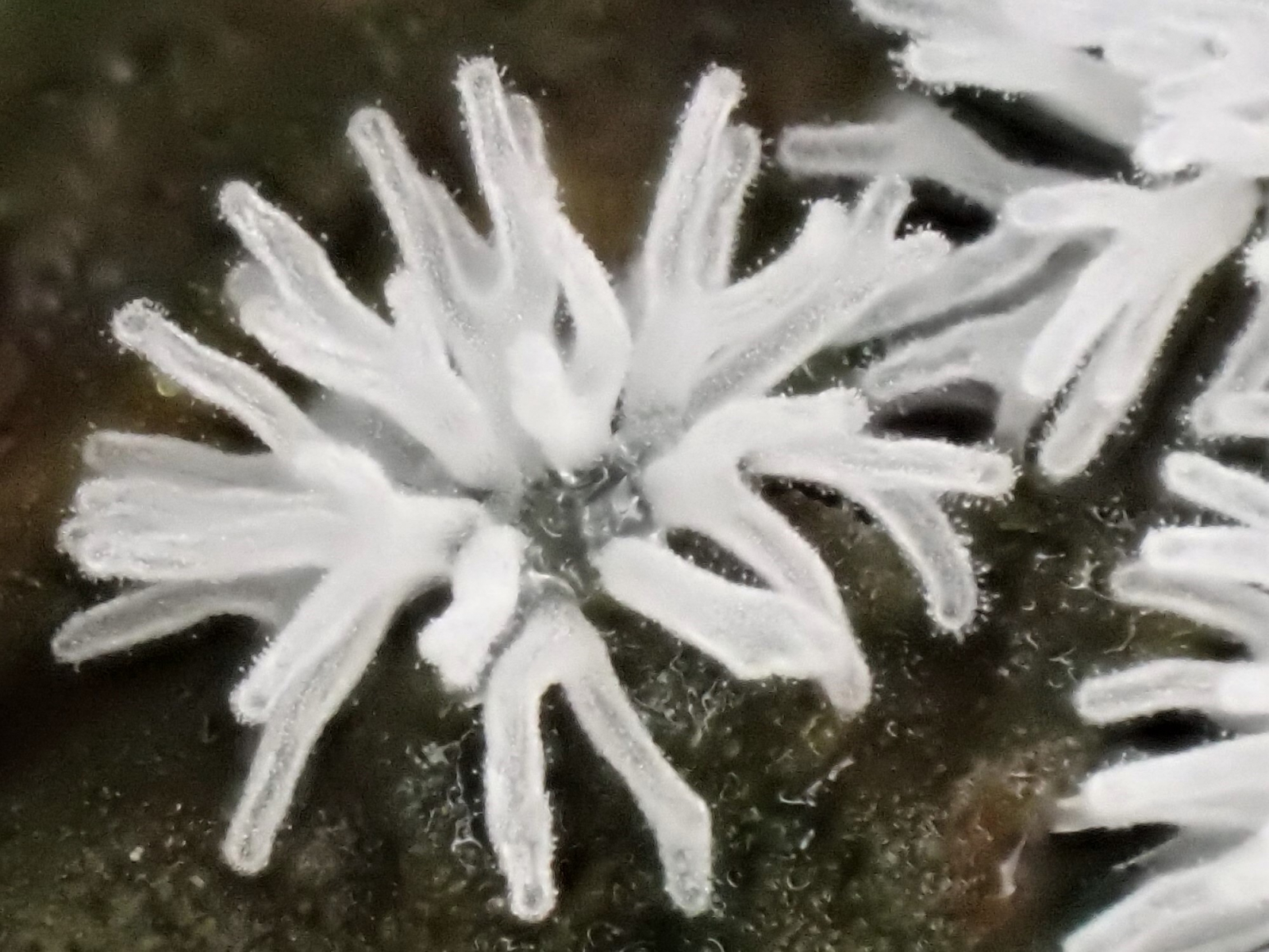 Bilder 1+2: Die weißen "Würmchen" oder "Keulchen" von meinen Bildern oben, besser fotografiert - aber Weiß ist schwierig! Besonders schön sieht man im Vordergrund das "Schleimstadium".