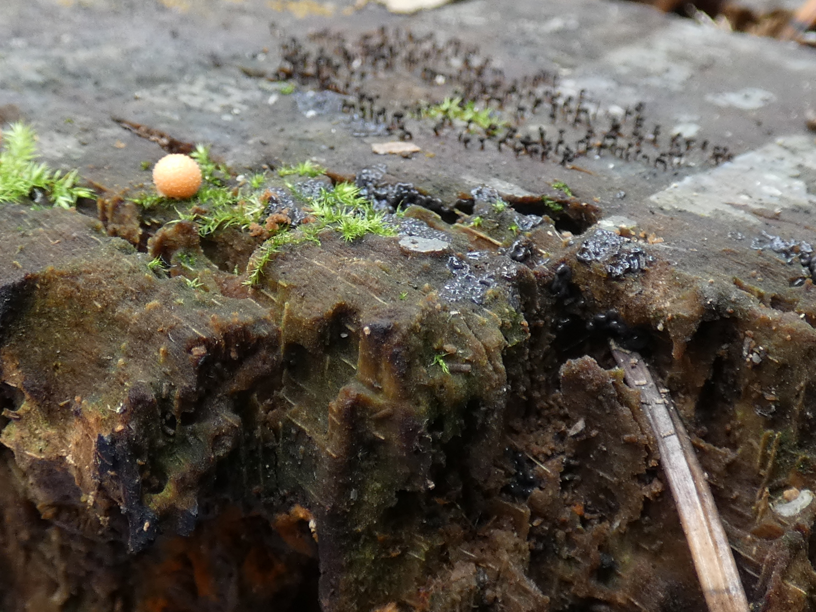 7. Anderes Holzstück, einen weiteren Schleimi gefunden! Dieser hat eine eher polsterförmige Erscheinung.