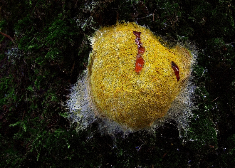 • Sooooo....ich konnte Mr. Grüni dafür gewinnen, aus der Kamera noch ein bißchen was rauszukitzeln und meinen Schleimi-Holzklotz nochmal vor die Linse zu nehmen. Einiges wurde nun viel besser sichtbar, zB auch die "schwarzen Pinöpel", die sich nun definitiv als Schleimpilze erwiesen haben. Was aber auch klar wurde, sind die Grenzen unserer Kamera. Mehr an Auflösung geht halt net, und trotz diverser Menüsuchereien, Stativbenutzung und Selbstauslöser, um nicht zu wackeln, wird es irgendwann grisselig.