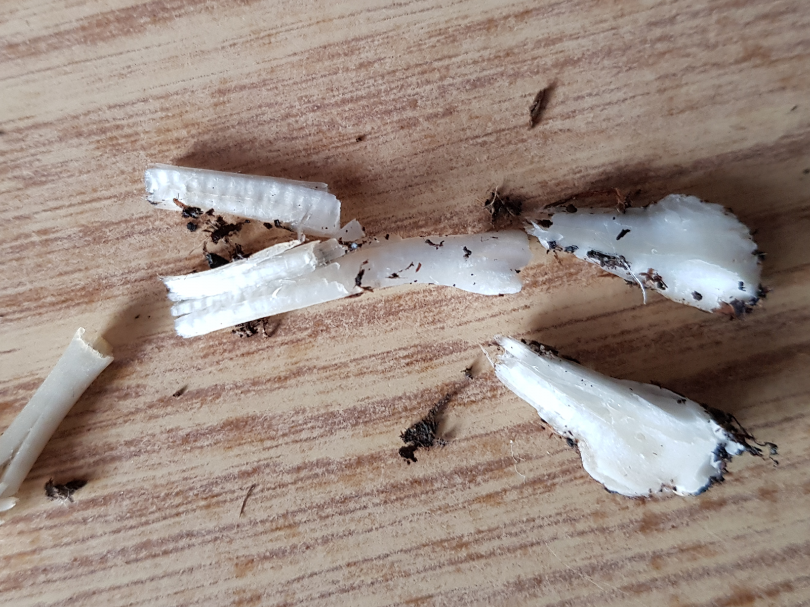 Fleisch im Hut ist dünn, im Stiel brüchig, leicht faserig und hohl