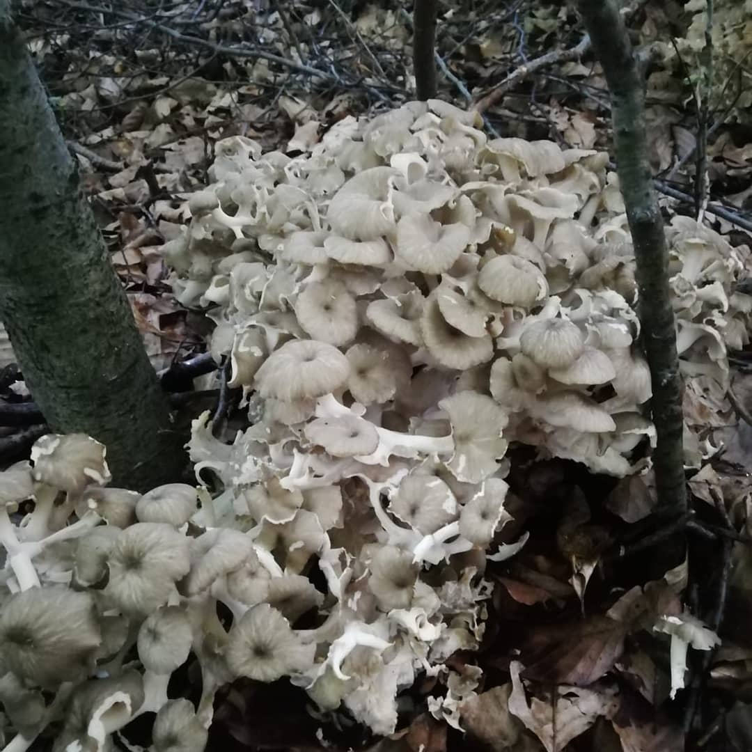 Hallo zusammen, heute habe ich in einem Buchenwald disen Pilz gefunden, er richte nüssig, ist das Eichhase (polyporus umbellatus)?