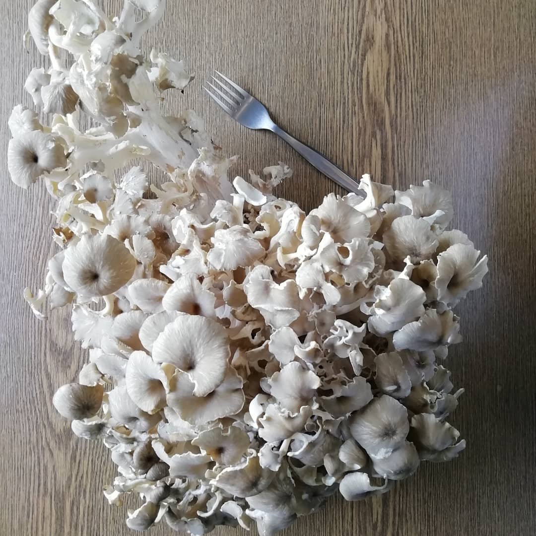 Hallo zusammen, heute habe ich in einem Buchenwald disen Pilz gefunden, er richte nüssig, ist das Eichhase (polyporus umbellatus)?