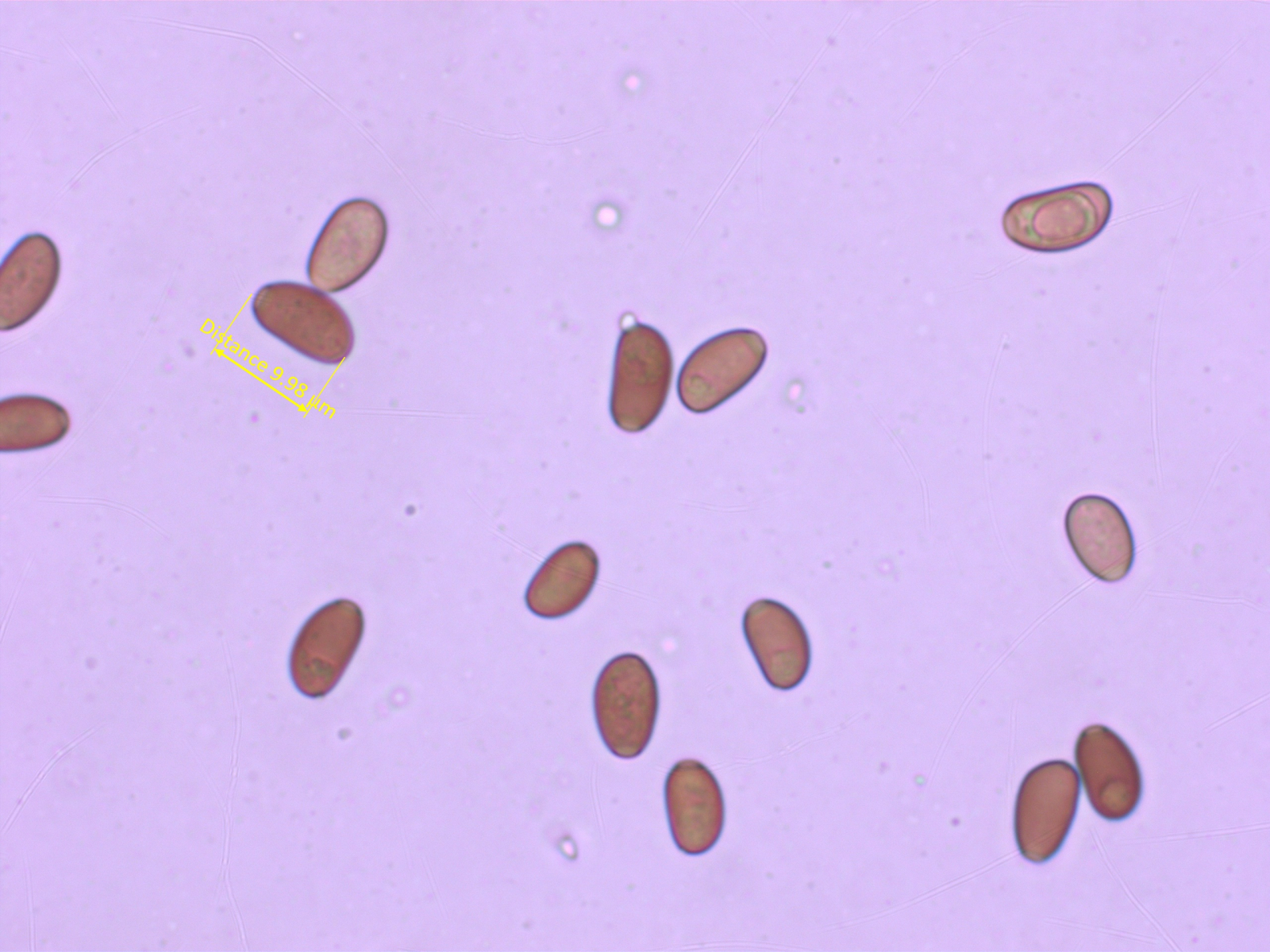 Sporen bis ca. 10x6µm, glatt, ohne Perispor, Keimporus meistens zentral, ca. 1.8 µm. Teilweise leicht phaseoliform. Hier in Wasser: