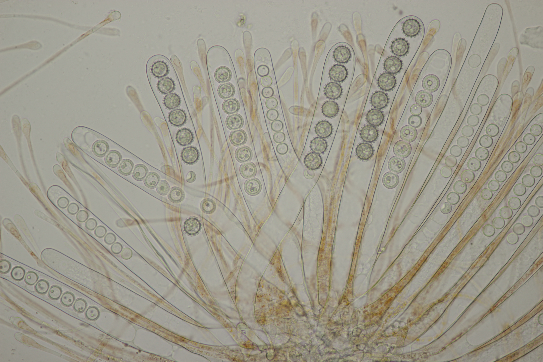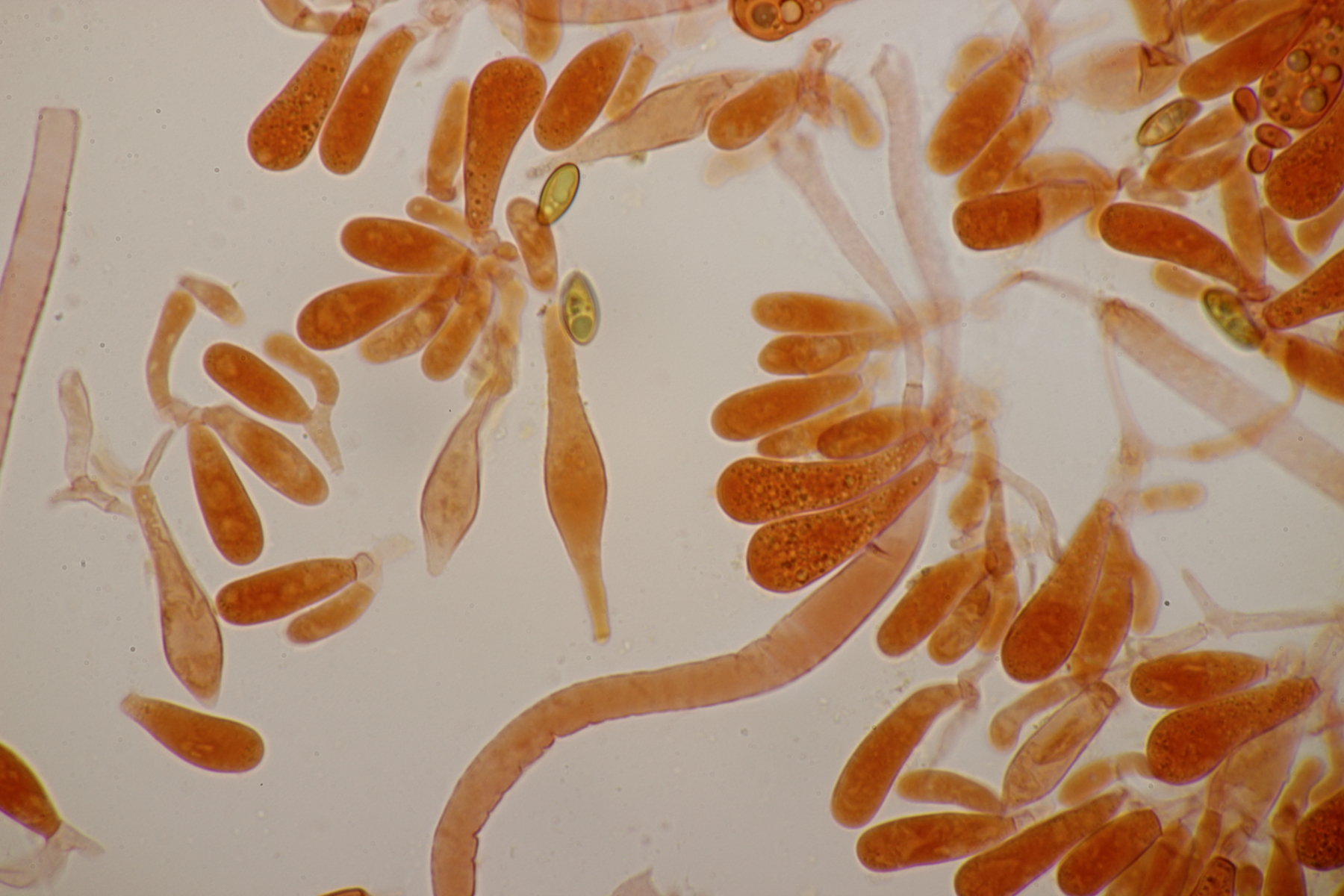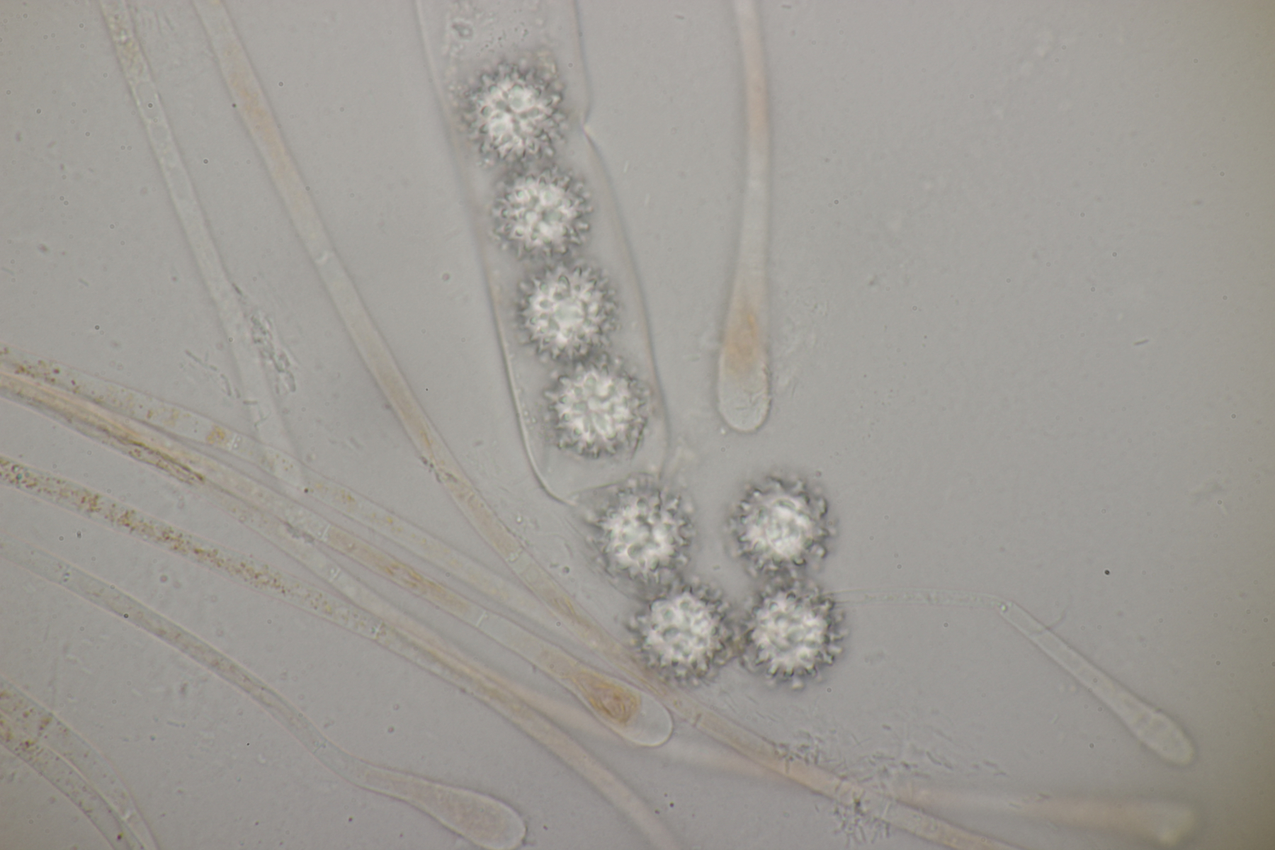 Sporen (13.6+-0.6) µm x (5.0+-0.2) µm, Q=2.7+-0.2