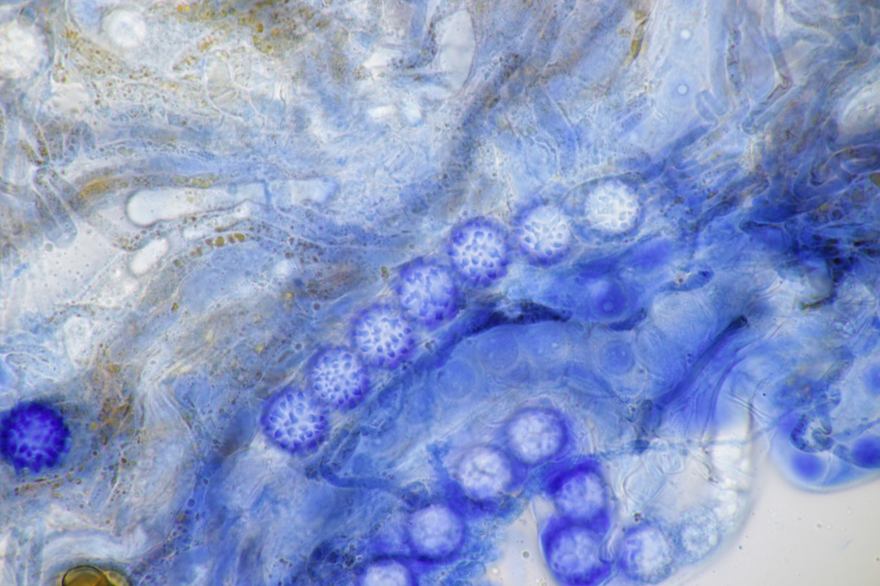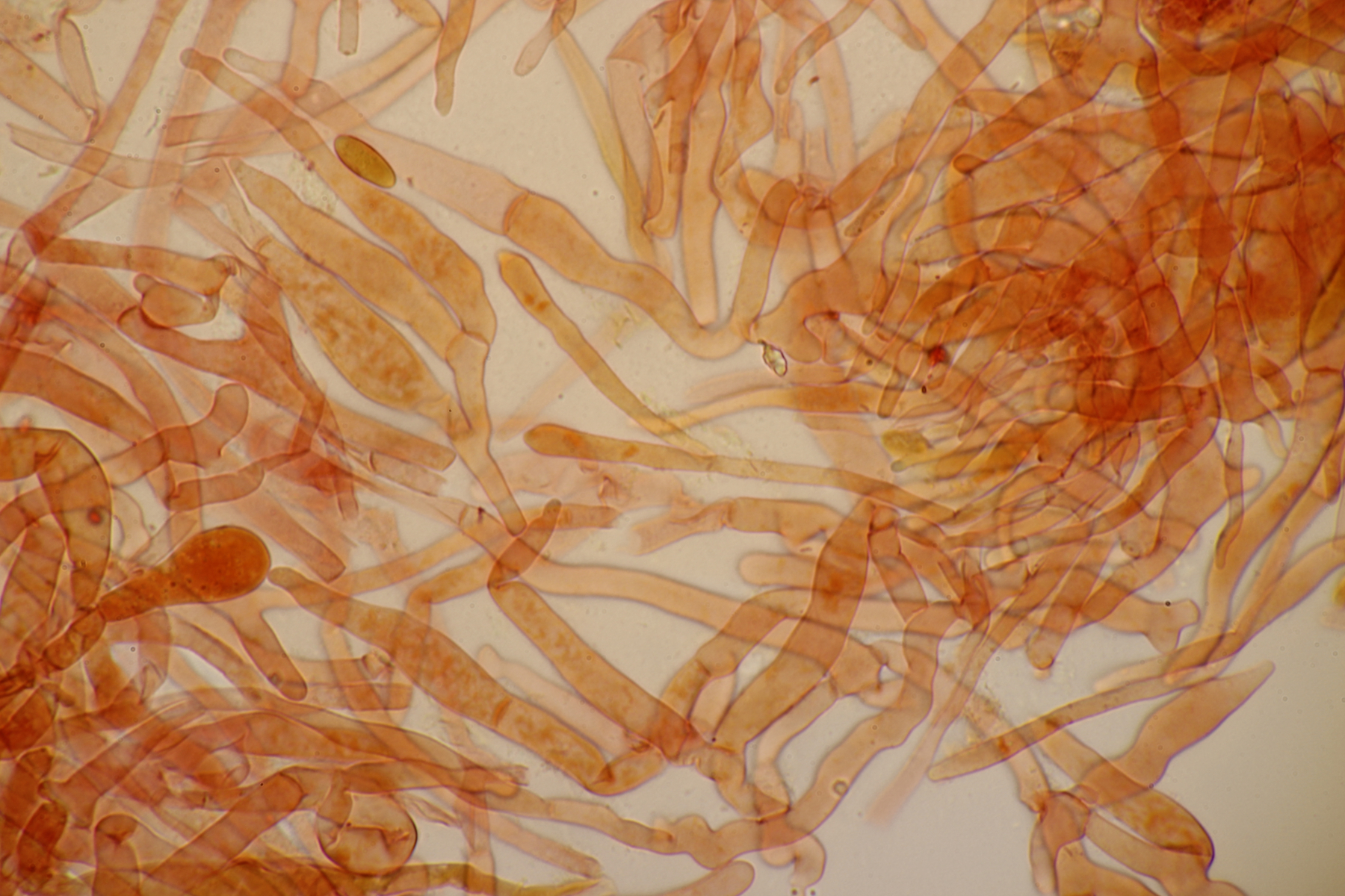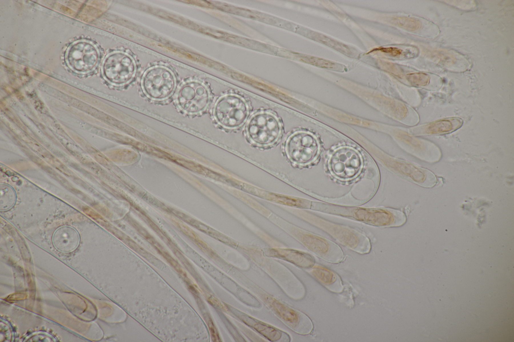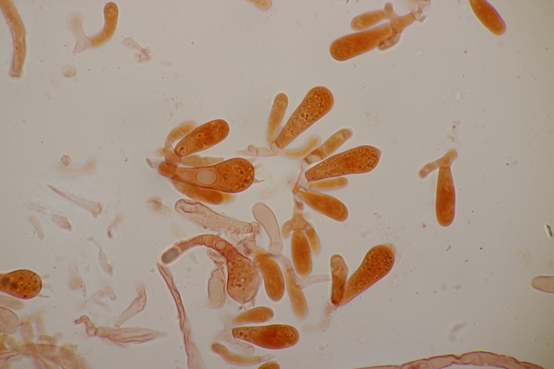 Sporen (13.6+-0.6) µm x (5.0+-0.2) µm, Q=2.7+-0.2