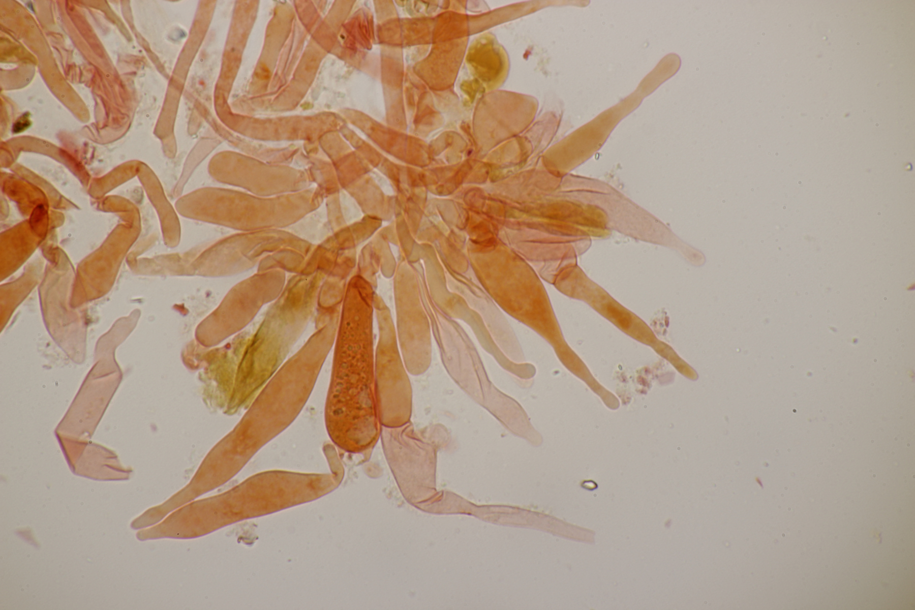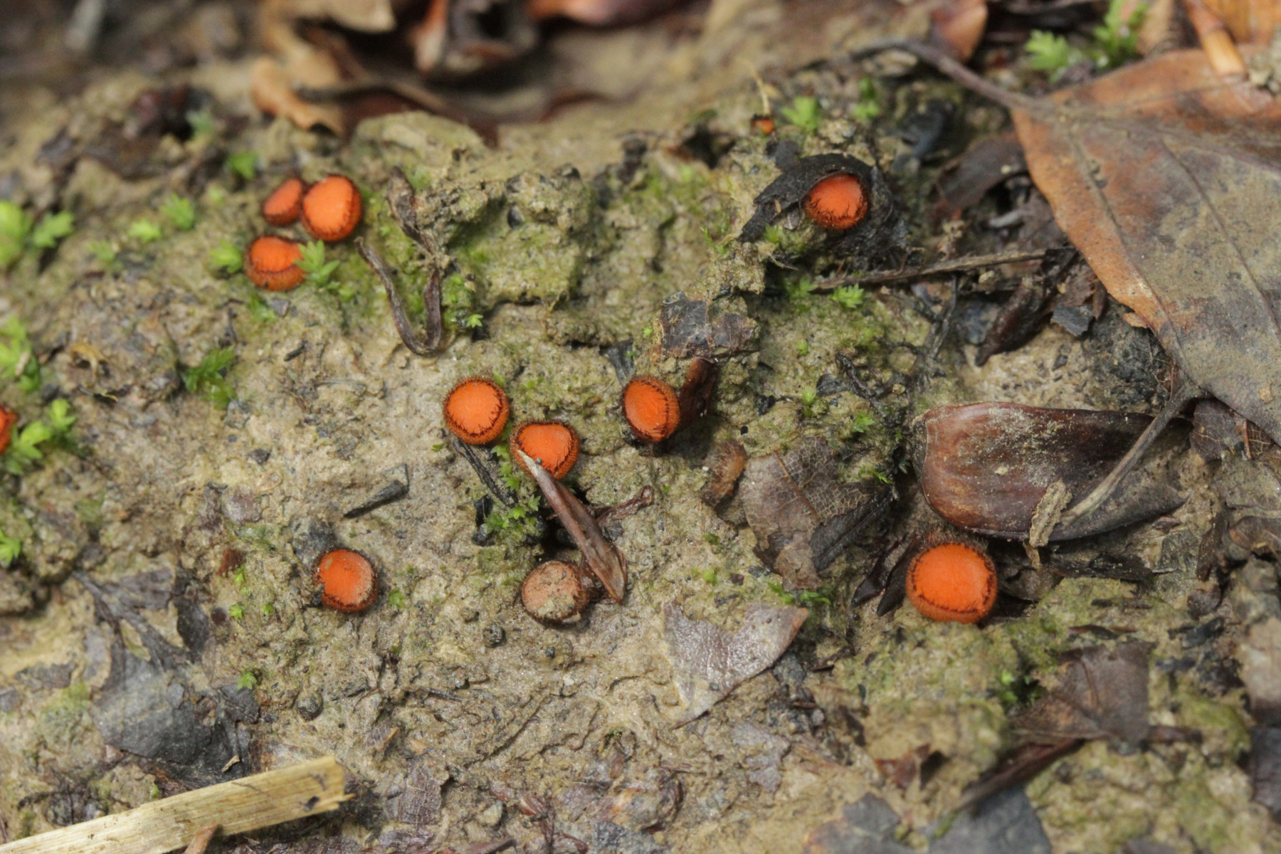 26. Auf der Tour hatte ich noch gewitzelz, daß ich nur noch rundsporige Scutellinias einpacken werde. Gesagt getan, aus einer Treckerspur habe ich Scutellinia trechispora mit nach Hause gebracht.