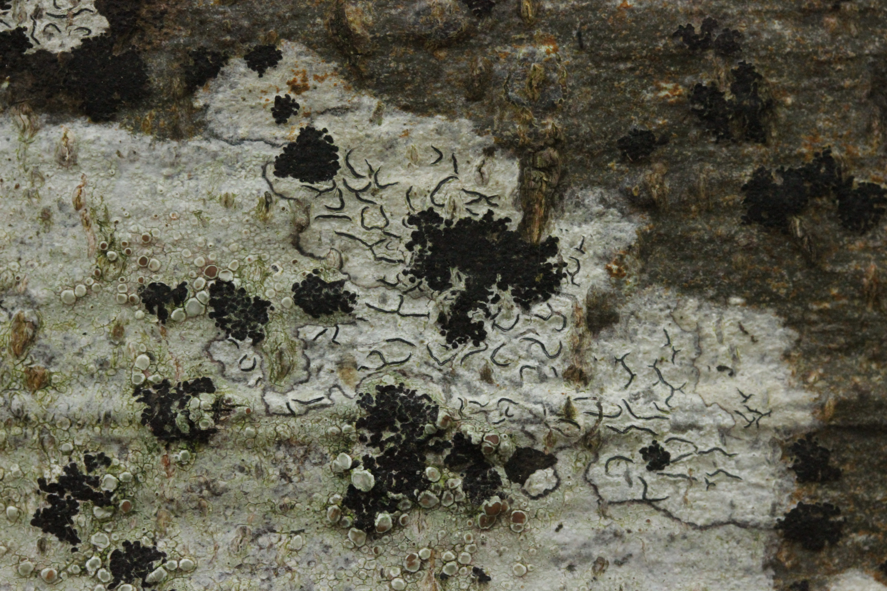 12. Flechten gab es auch. Das dürfte Graphis scripta agg. sein