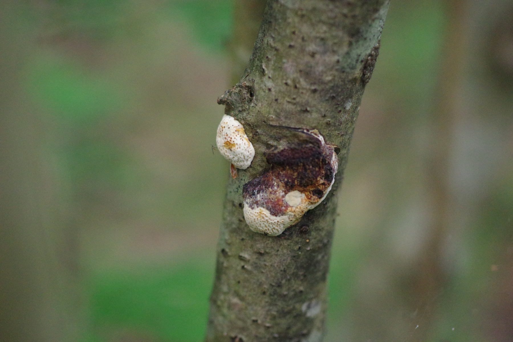 • Moin, bin gerade über ganz winzige Haselporlinge gestolpert, die an einem bisher nicht bewachsenen Haselstrauch zu wachsen beginnen. Das ergibt die Möglichkeit zu sehen, wie alt die werden und wie lange die an einer Stelle aushalten. Wobei ich dem Ast maximal noch 3 Jahre gebe, bis er umfällt. Da sind schon Krusten und Pyrenos dran.