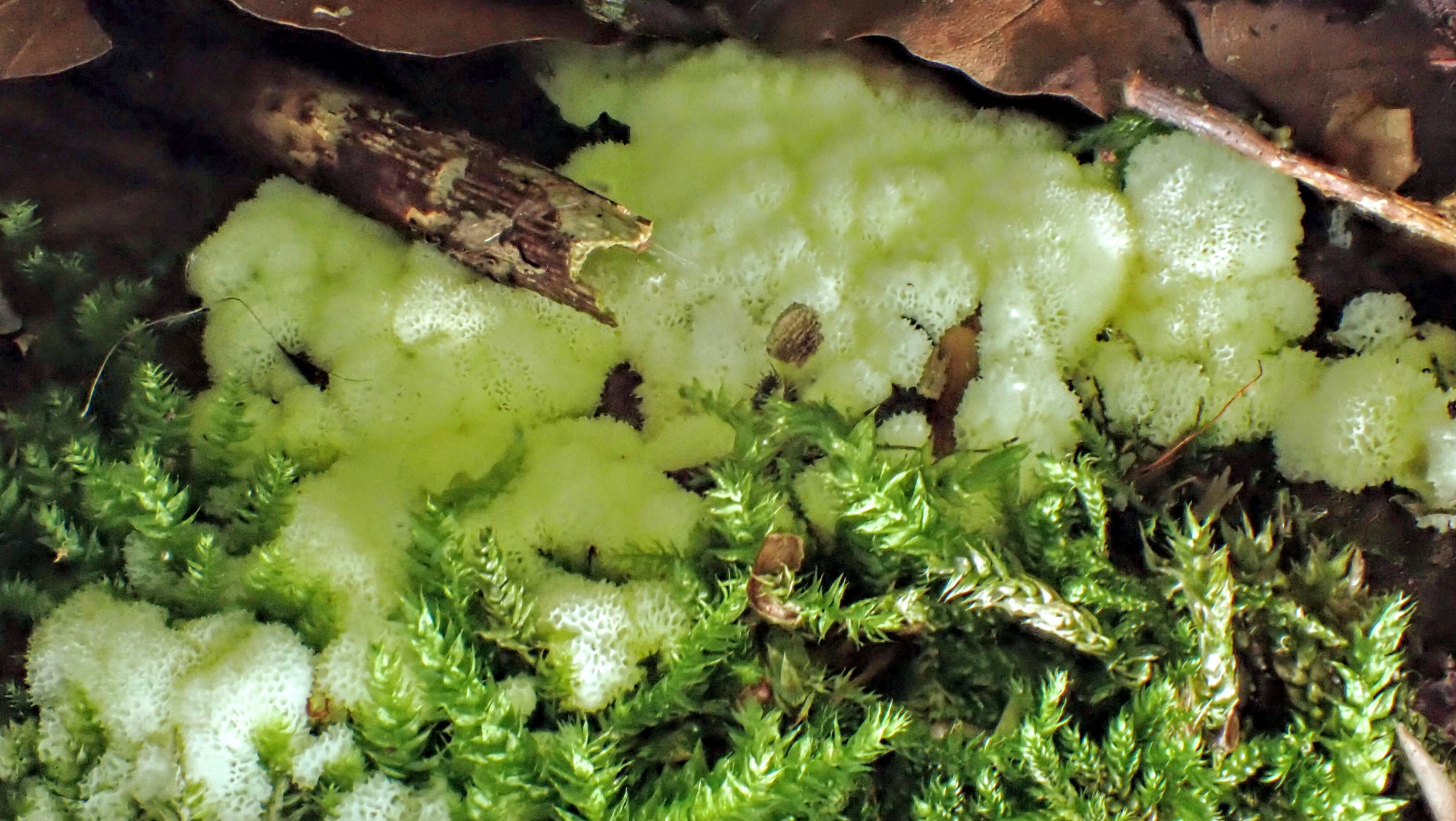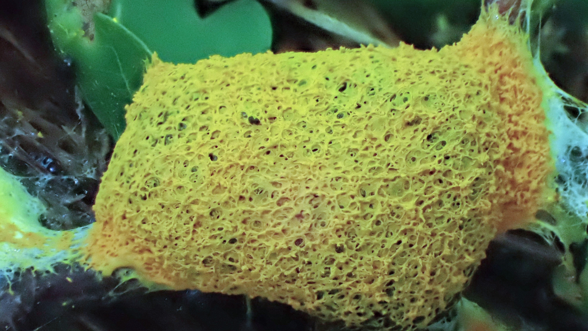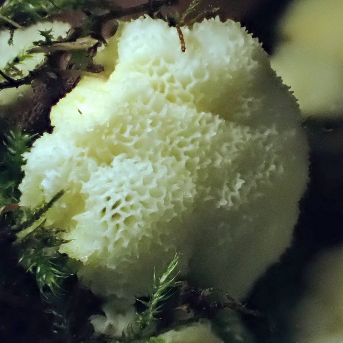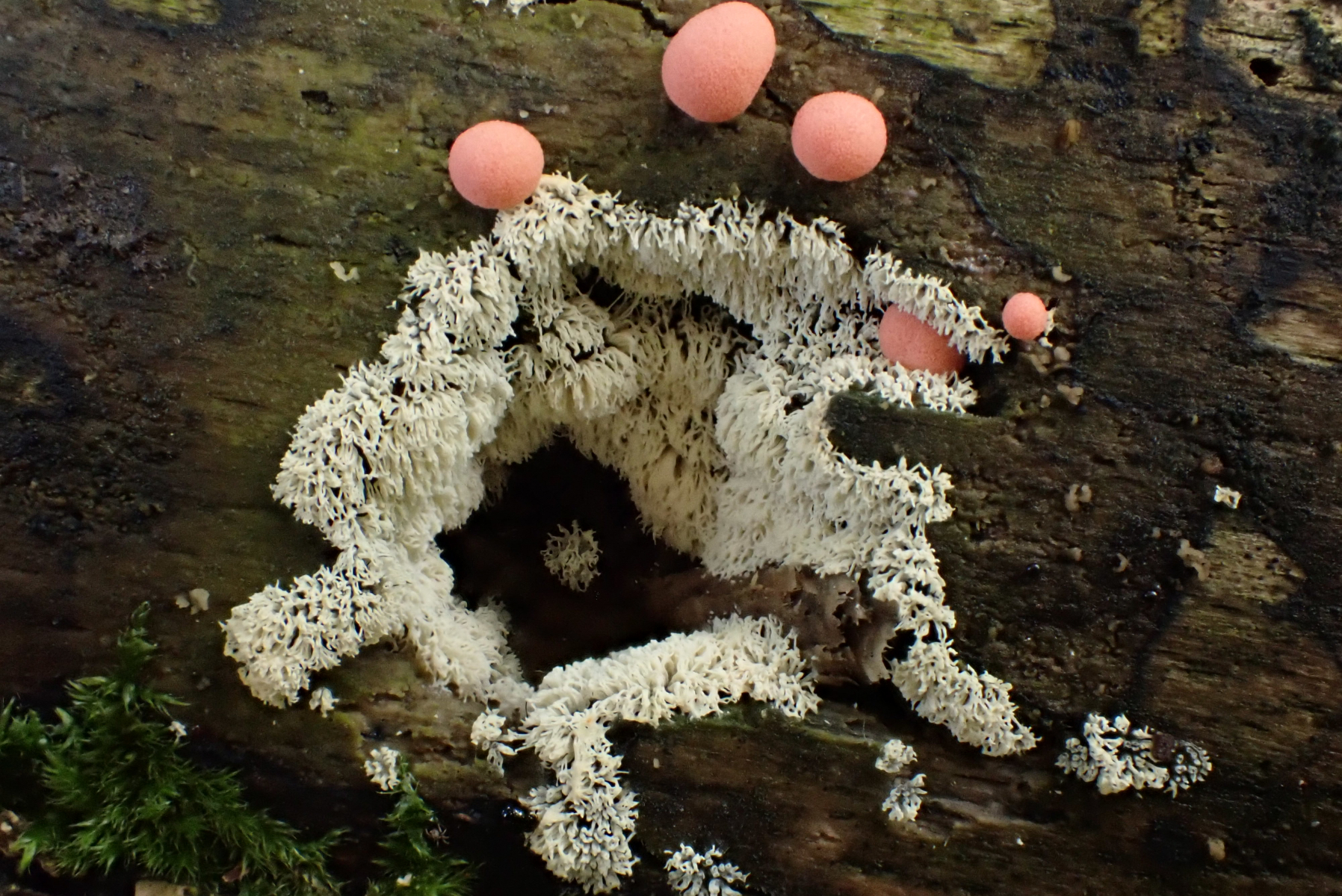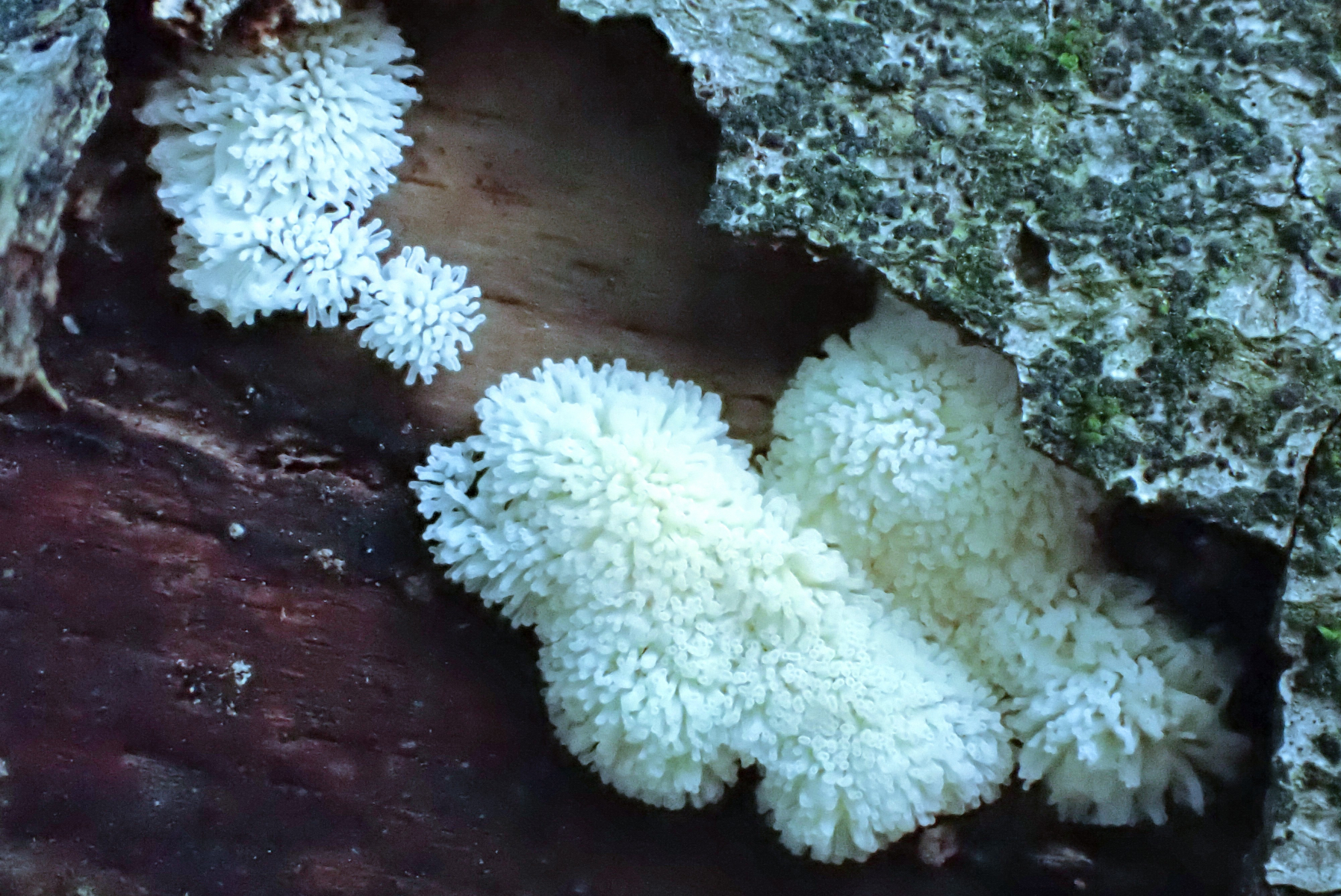 4 Ceratiomyxa fruticulosa var. porioides, Weißes Netzpolster
