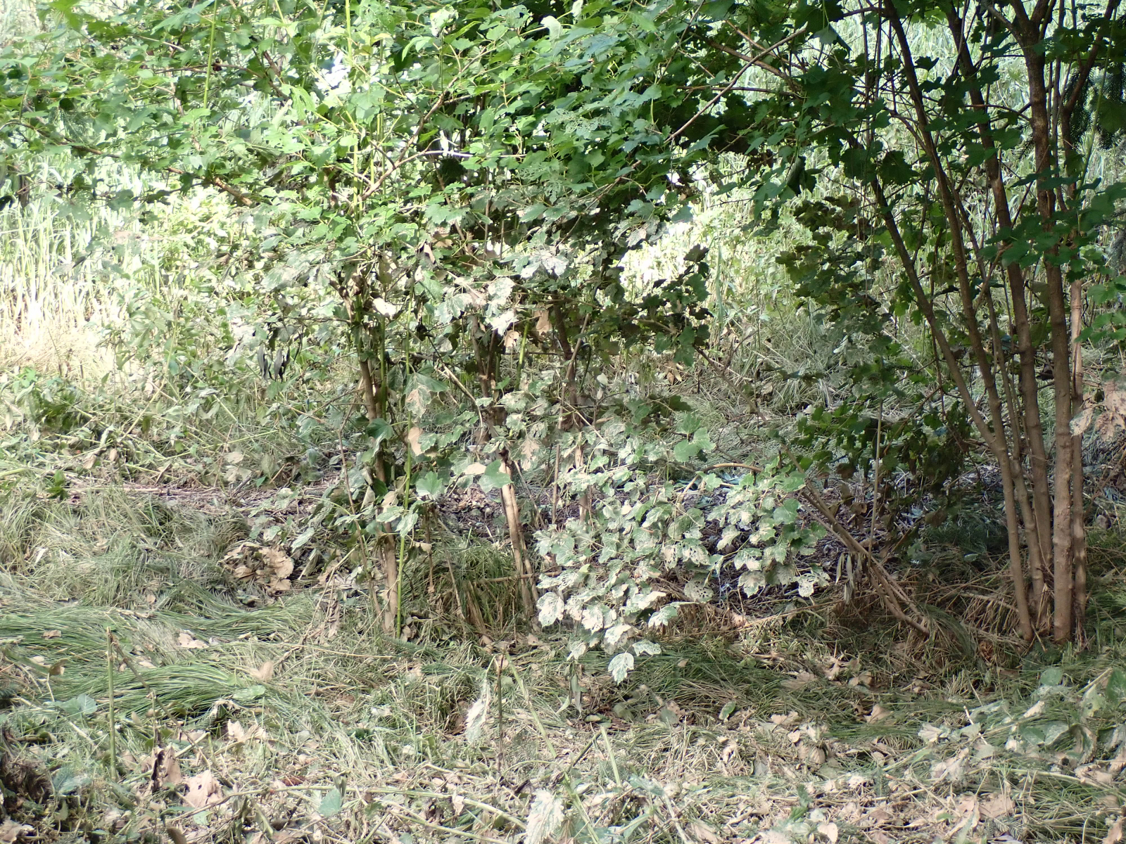 An dieser Stelle stand das Wasser wohl anderthalb Meter hoch. Zumindest sind die Blätter der Sträucher bis zu dieser Höhe verschmutzt.
