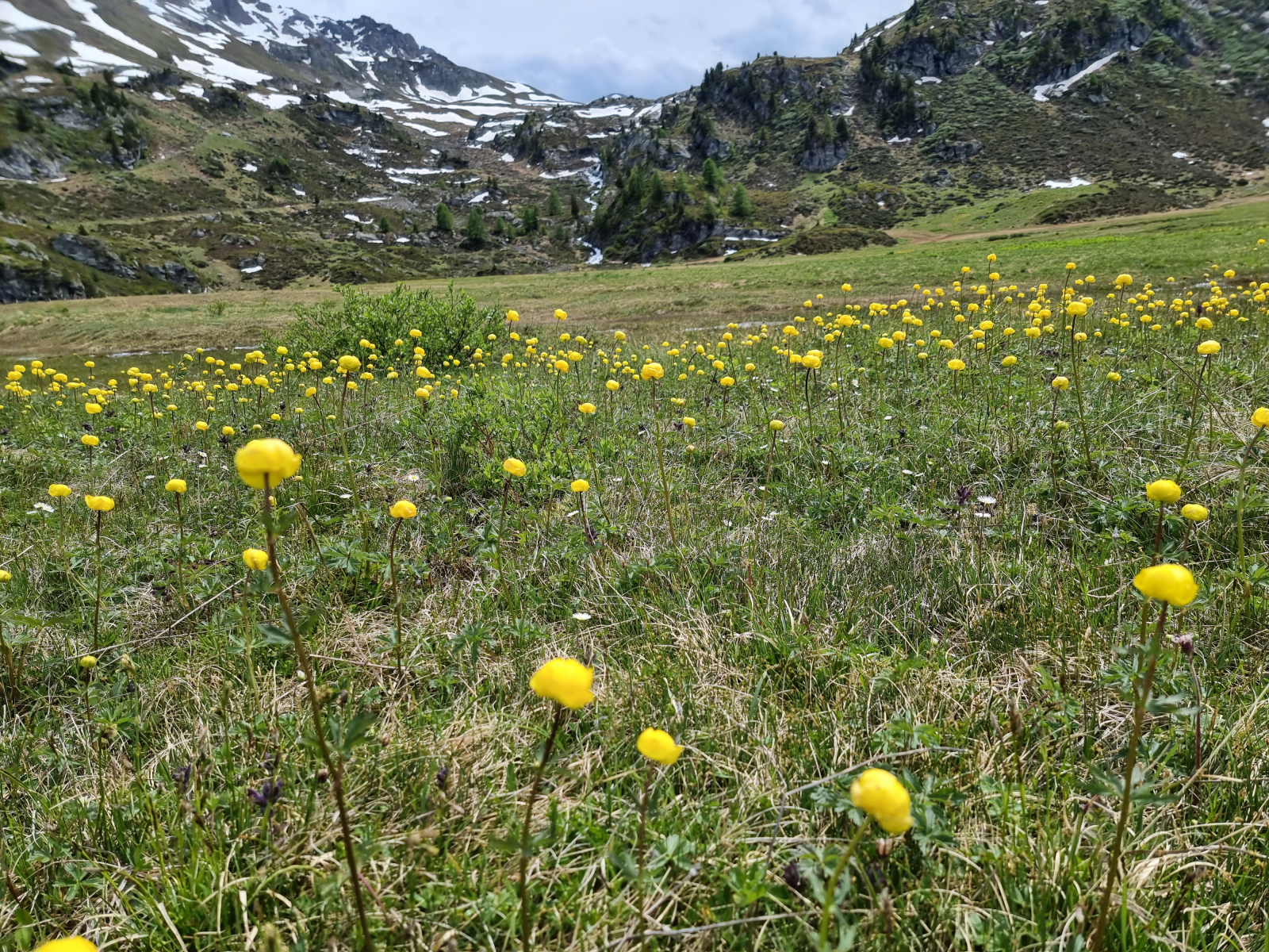 Dafür gab es Blumen, und zwar jede Menge. Oben auf dem Bild seht ihr gelbe Blumen im Moor, das ist eine Mischung aus Sumpfdotterblumen und Trollblumen.