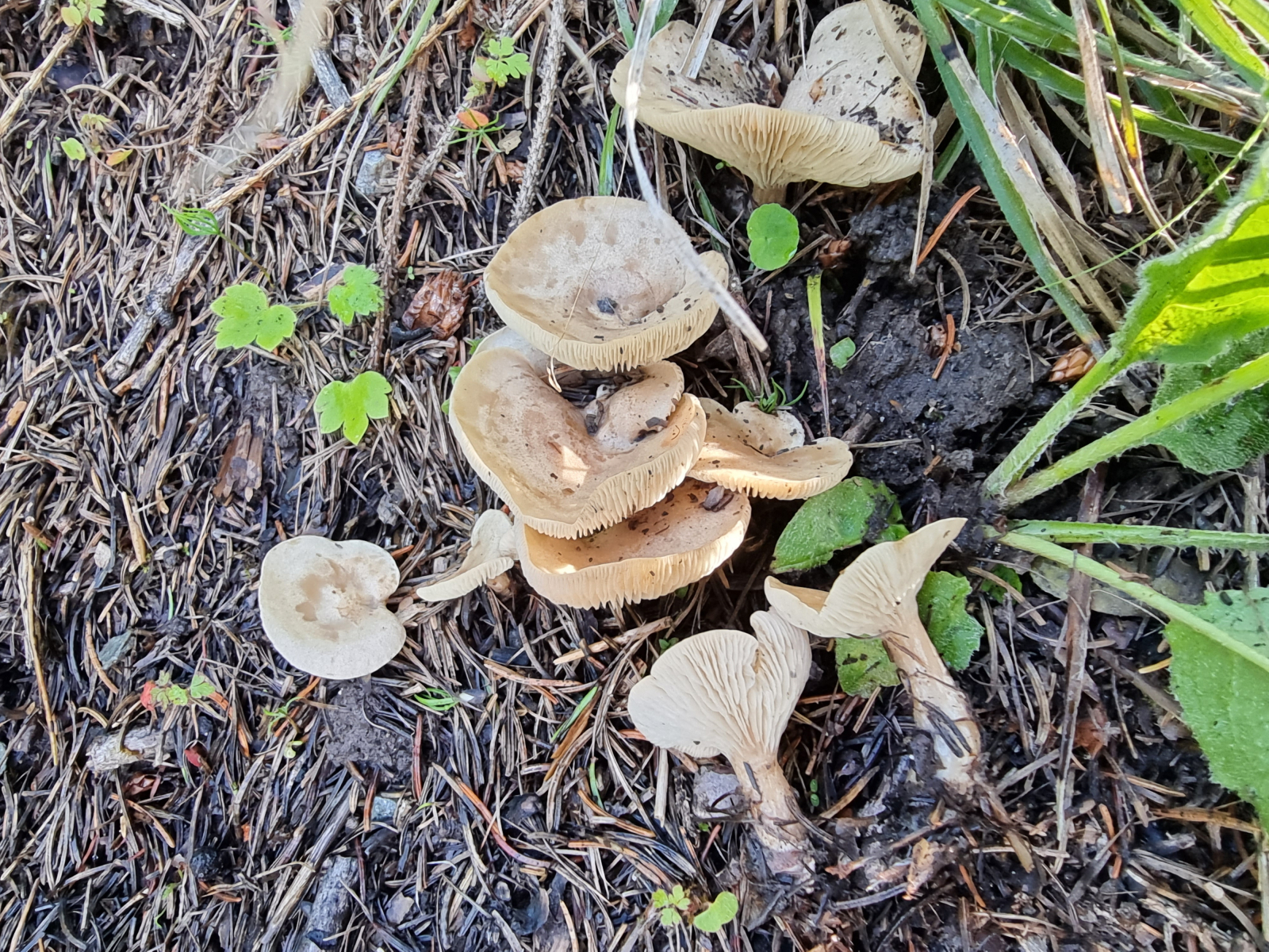Aber immerhin, ein paar Pilze gab es dann doch, etwas abseits auf einer Alpweide. Im Frühsommer gehören Weichritterlinge dort zum Pflichtprogramm