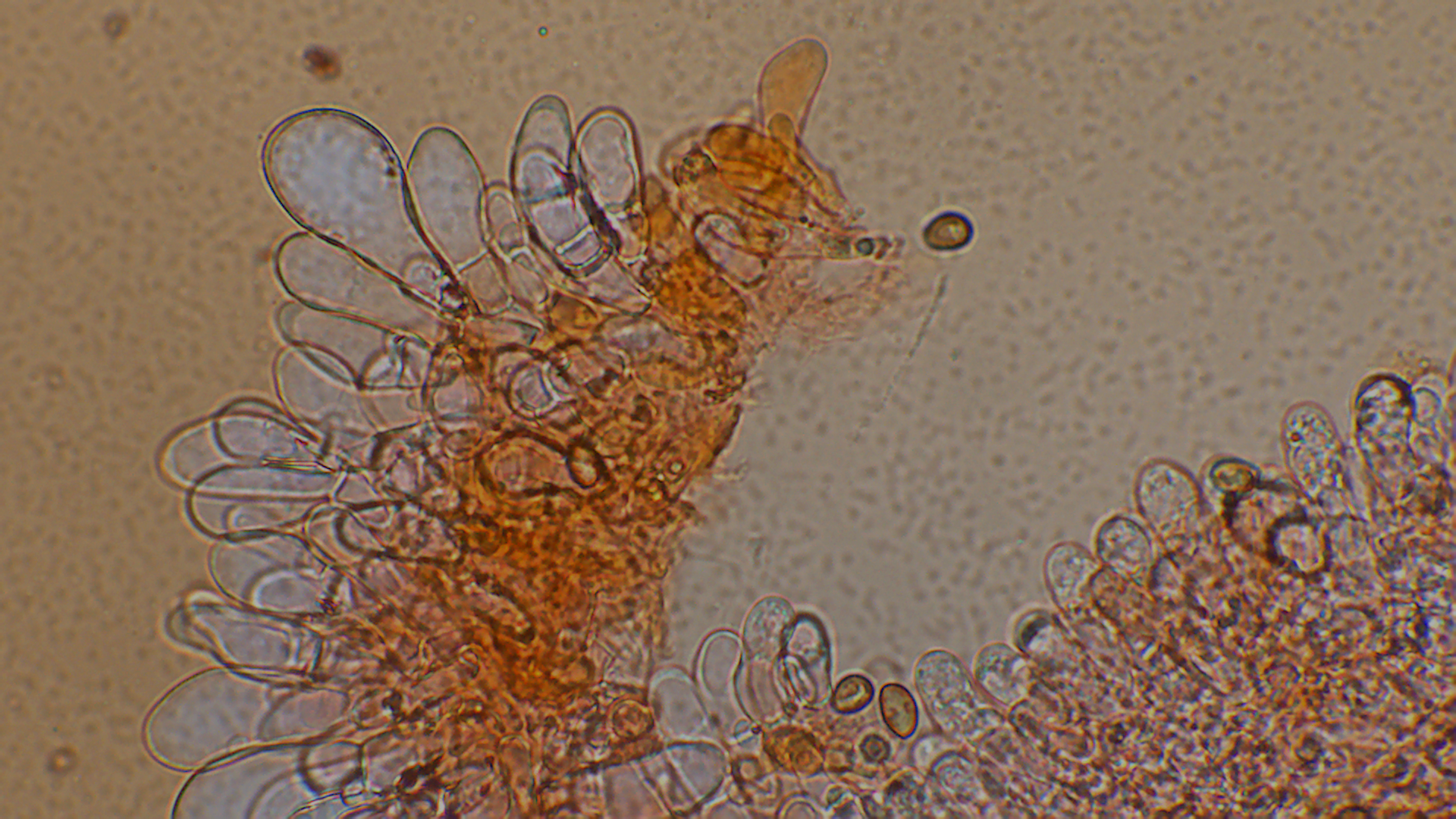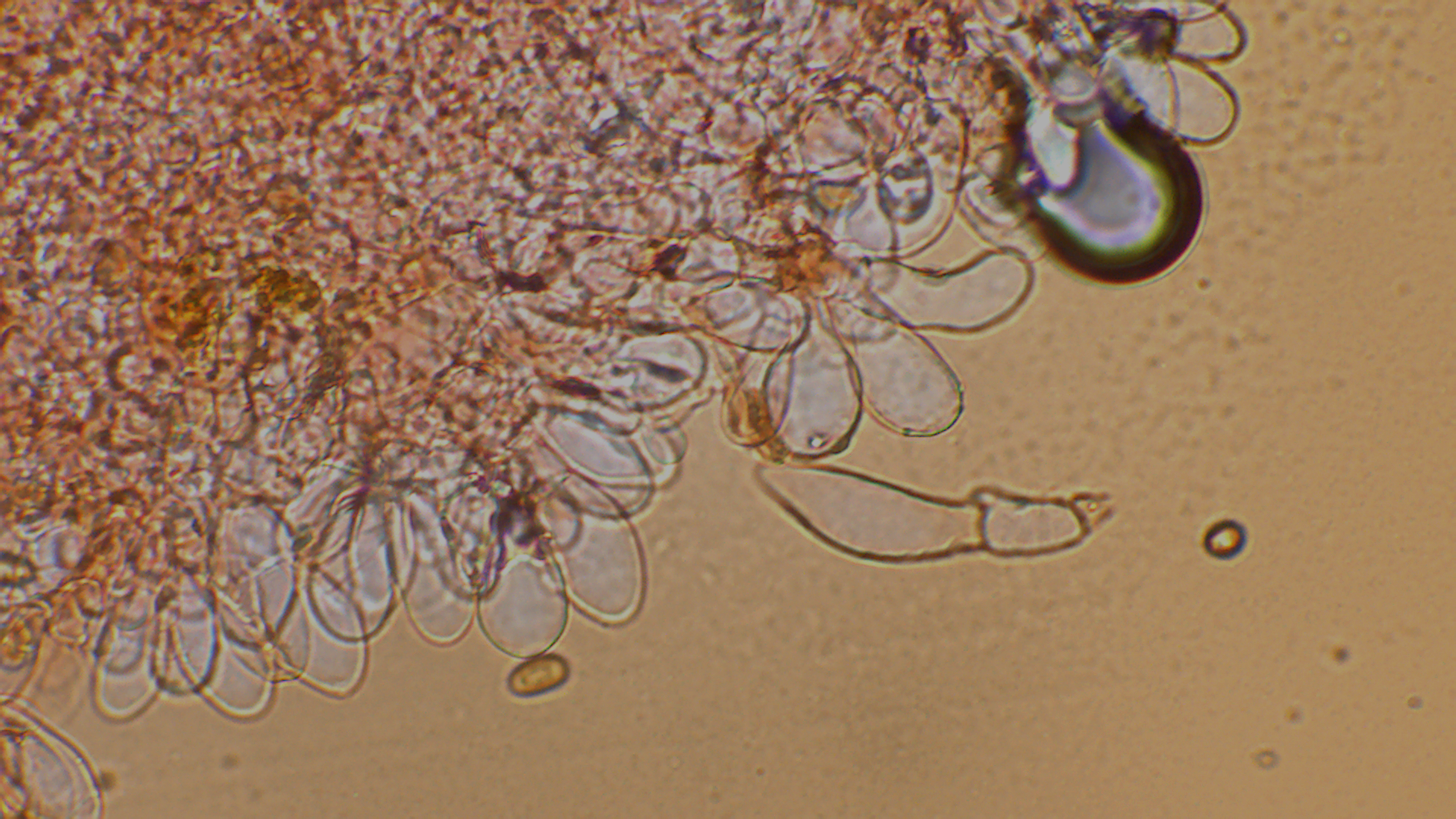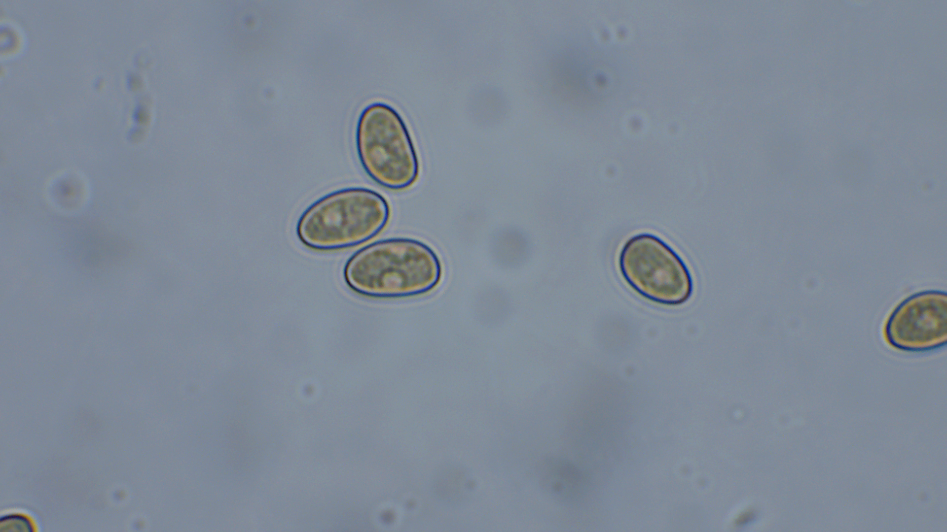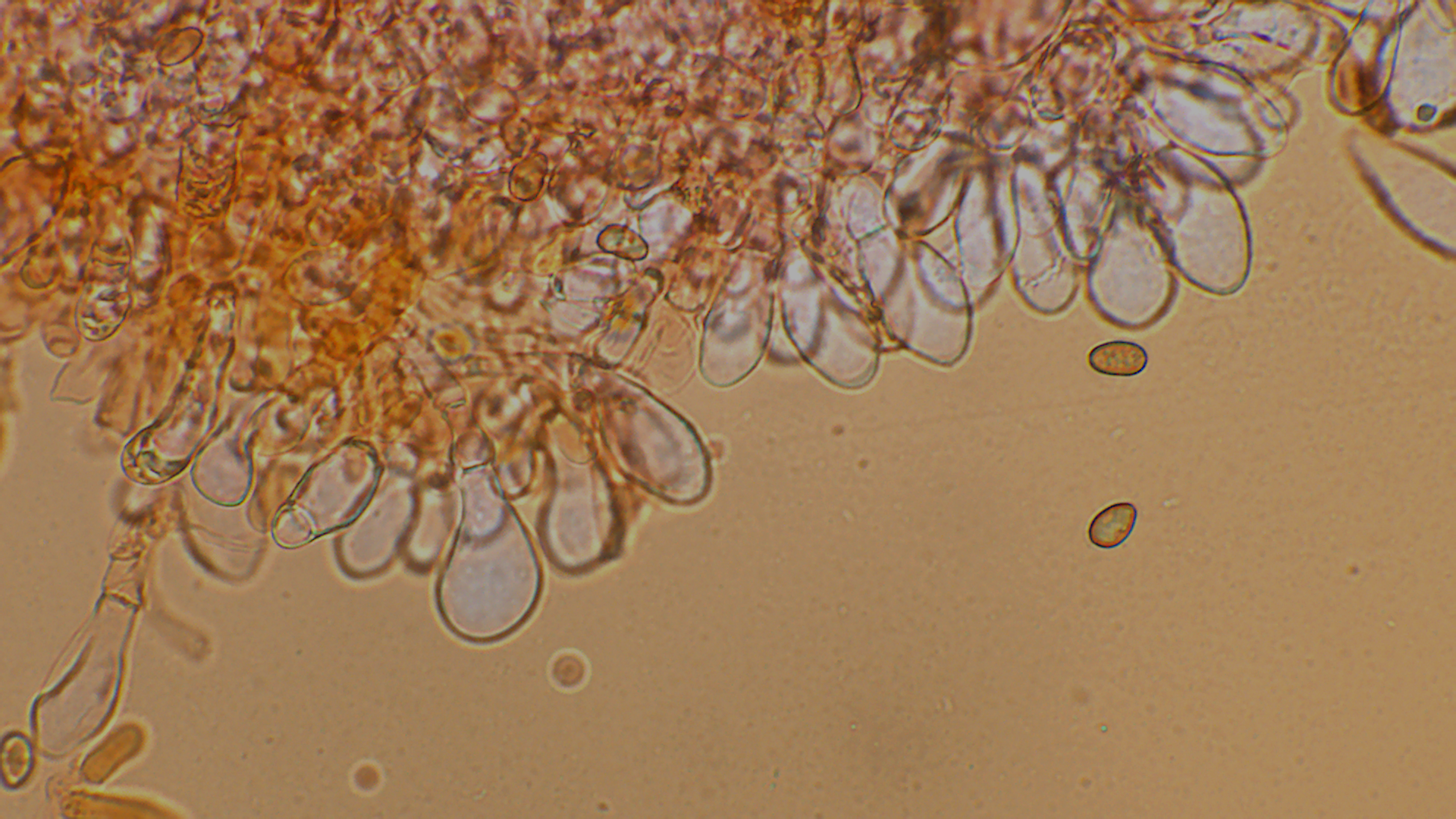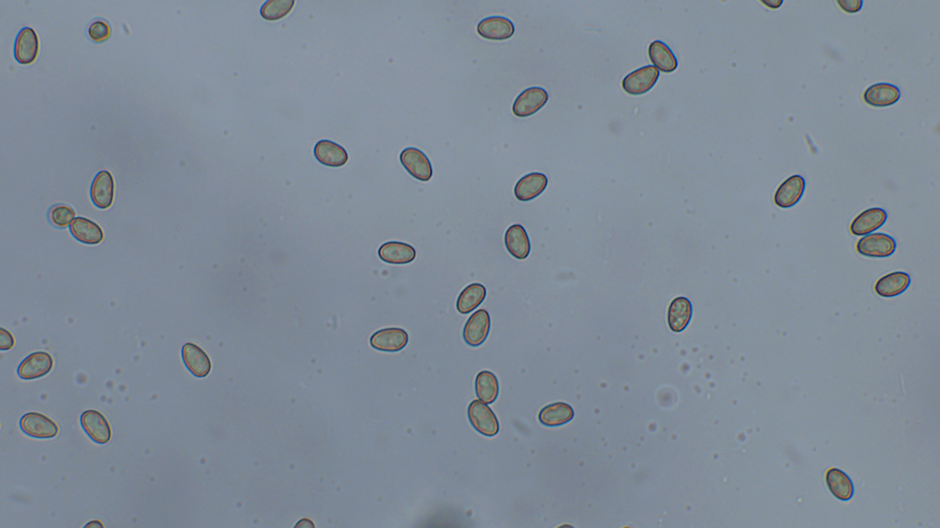 Die Sporen waren 8,6-10,6X5,2-5,7 groß. Im Durchschnitt 9,3-5,5.