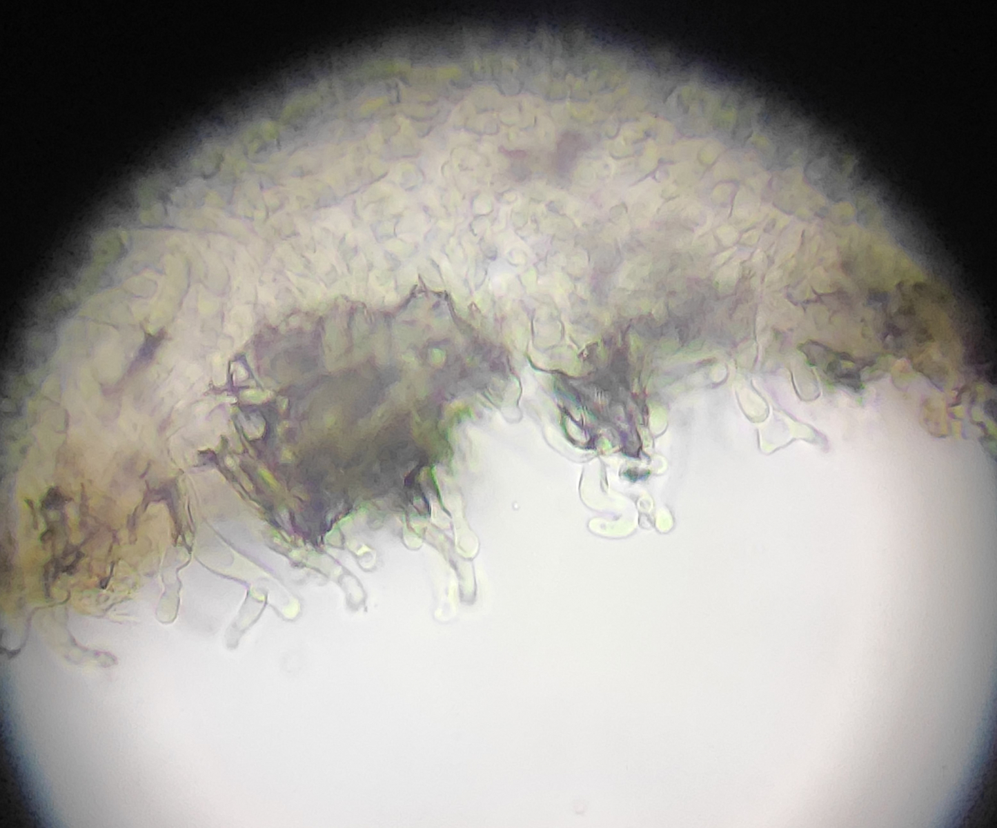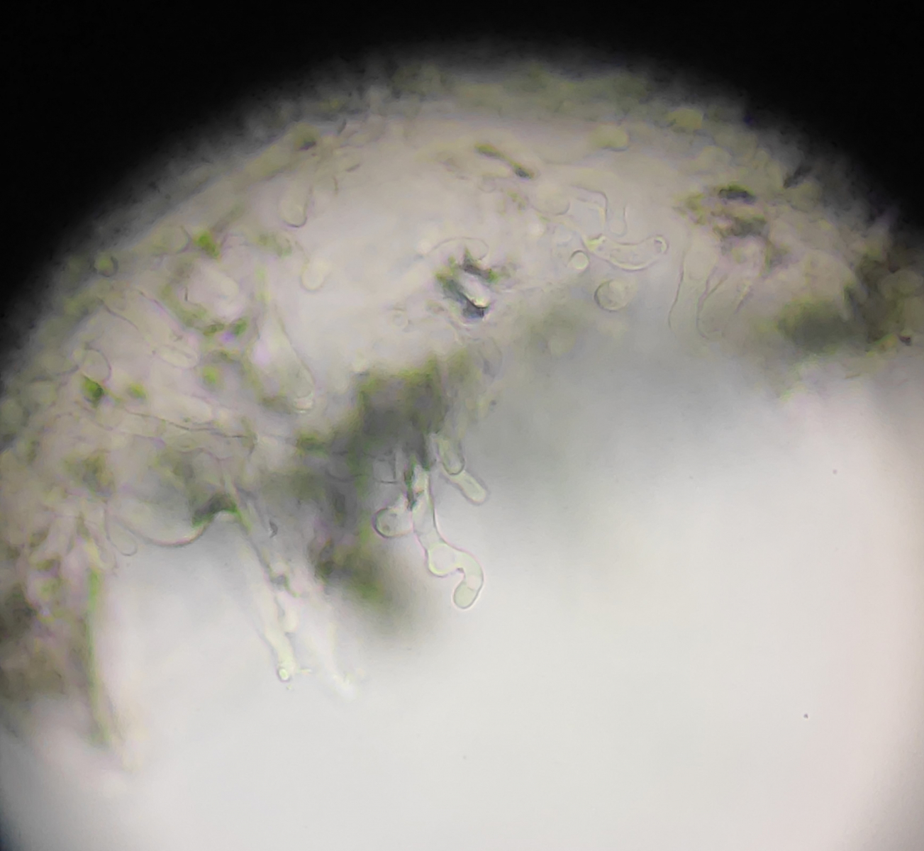 Bei einem Exemplar ist an der Stielbasis noch eine dünne Membran zu sehen: