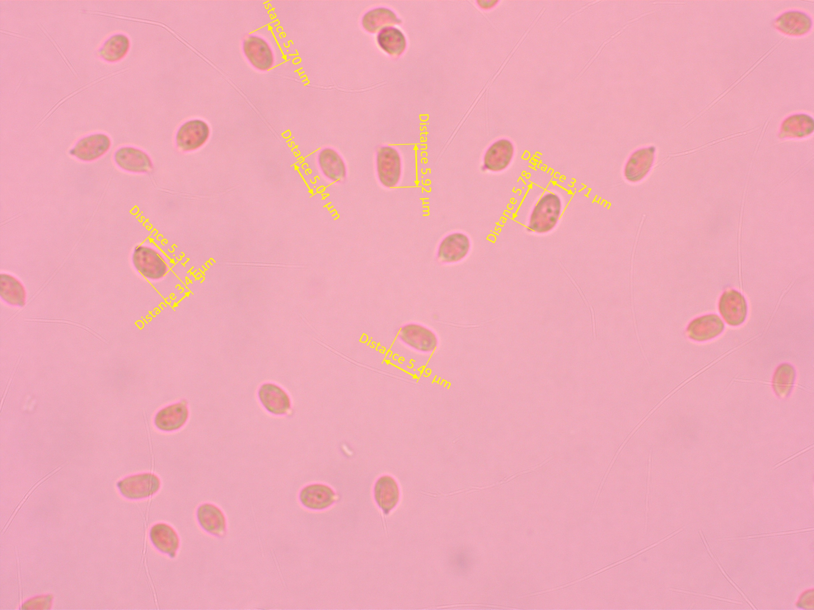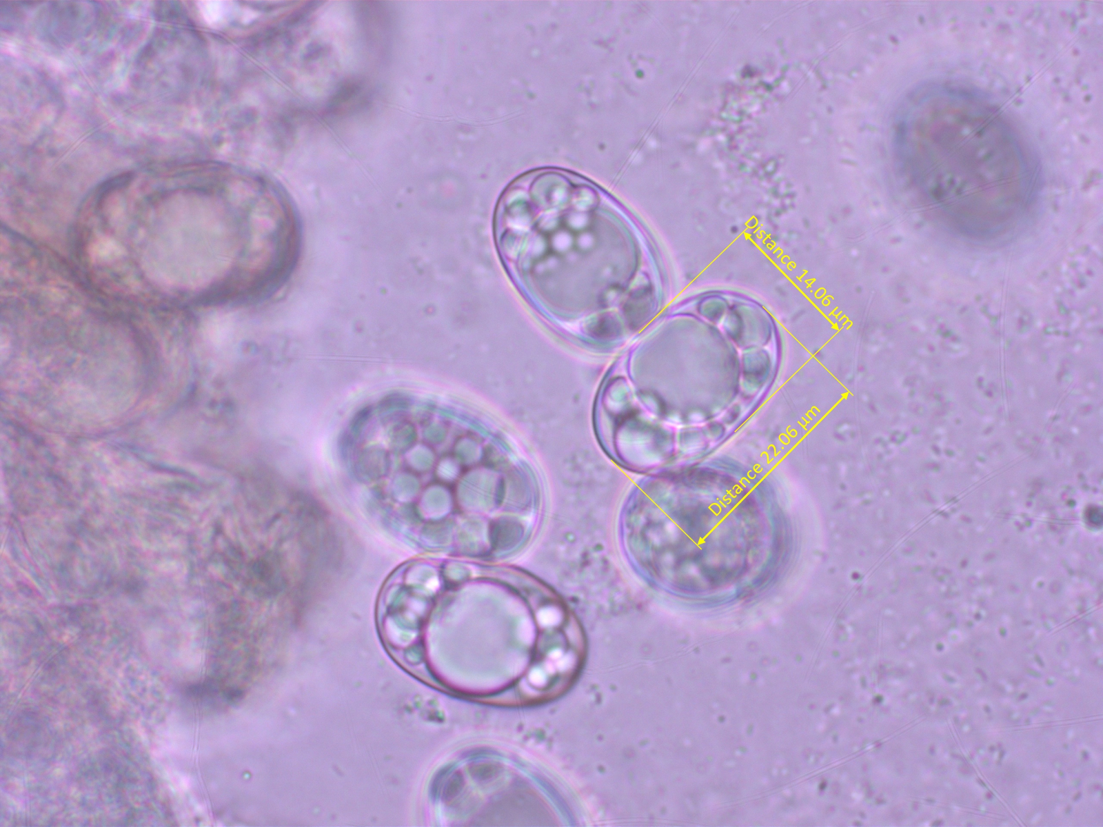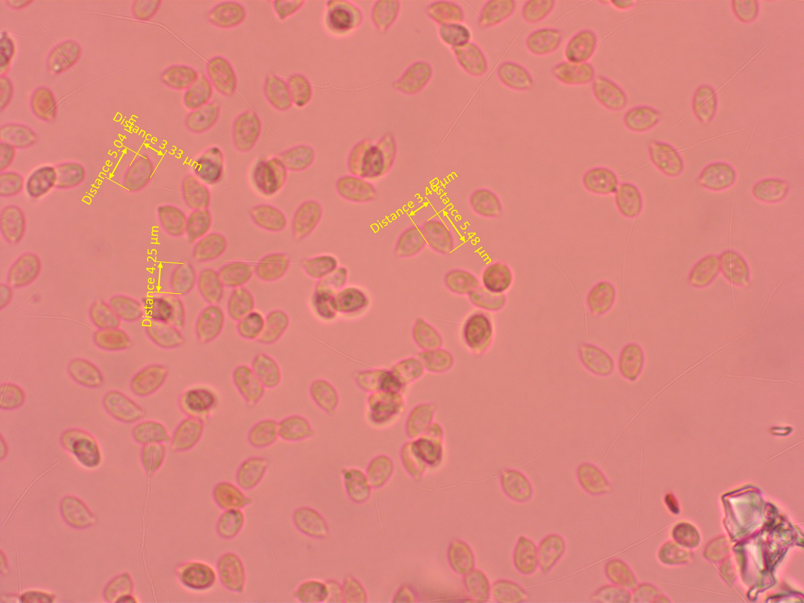 Sporen recht klein, im Schnitt unter 5.5 µm lang.