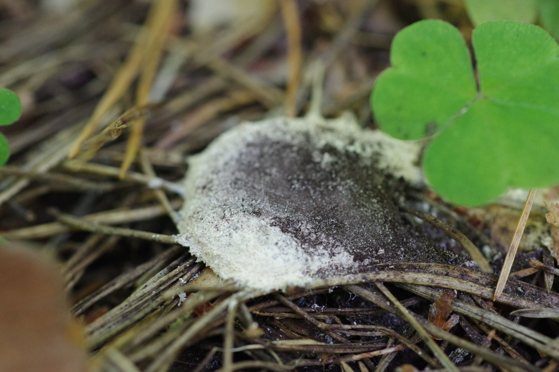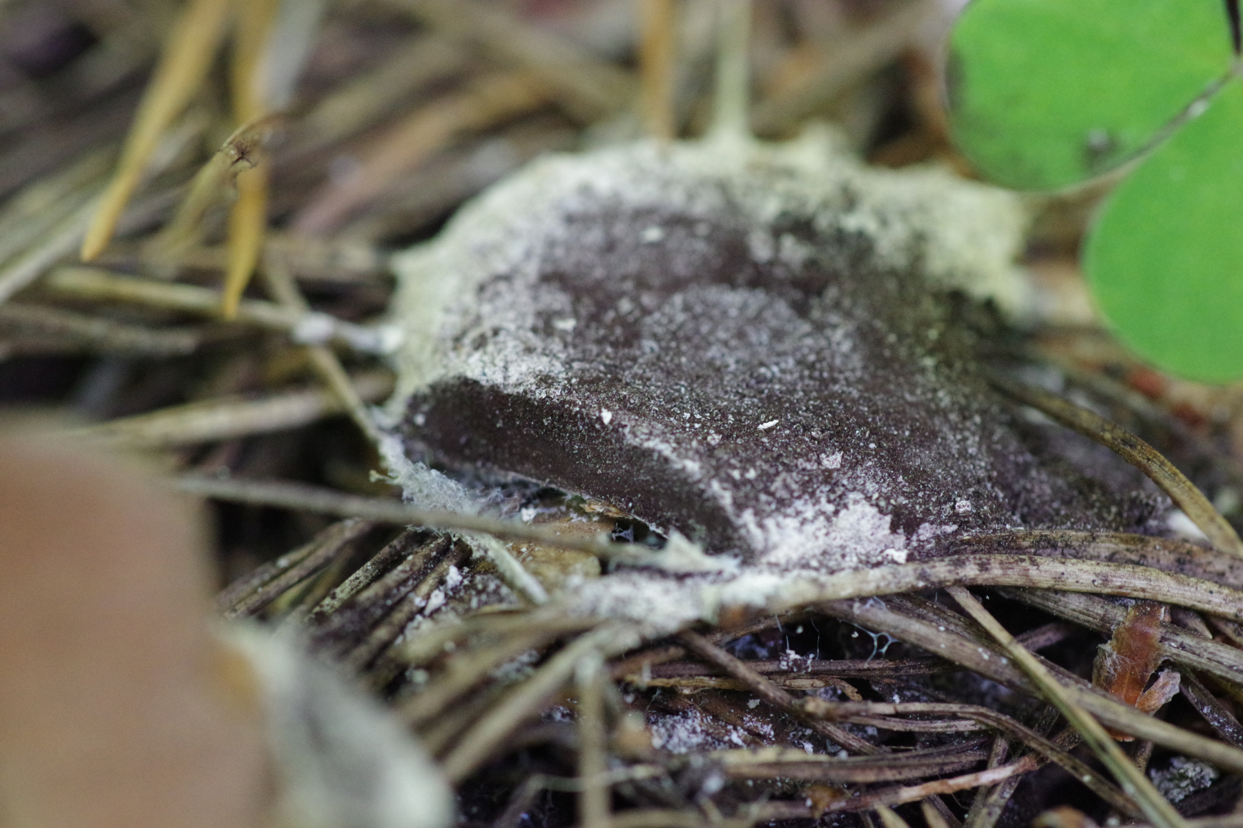 und der, 1 m entfernt, war mir gestern schon aufgefallen, nach Berührung wird der schwarz und das weiße Pulver wirkt an den Händen wie Talkum, im Schnitt schwarz