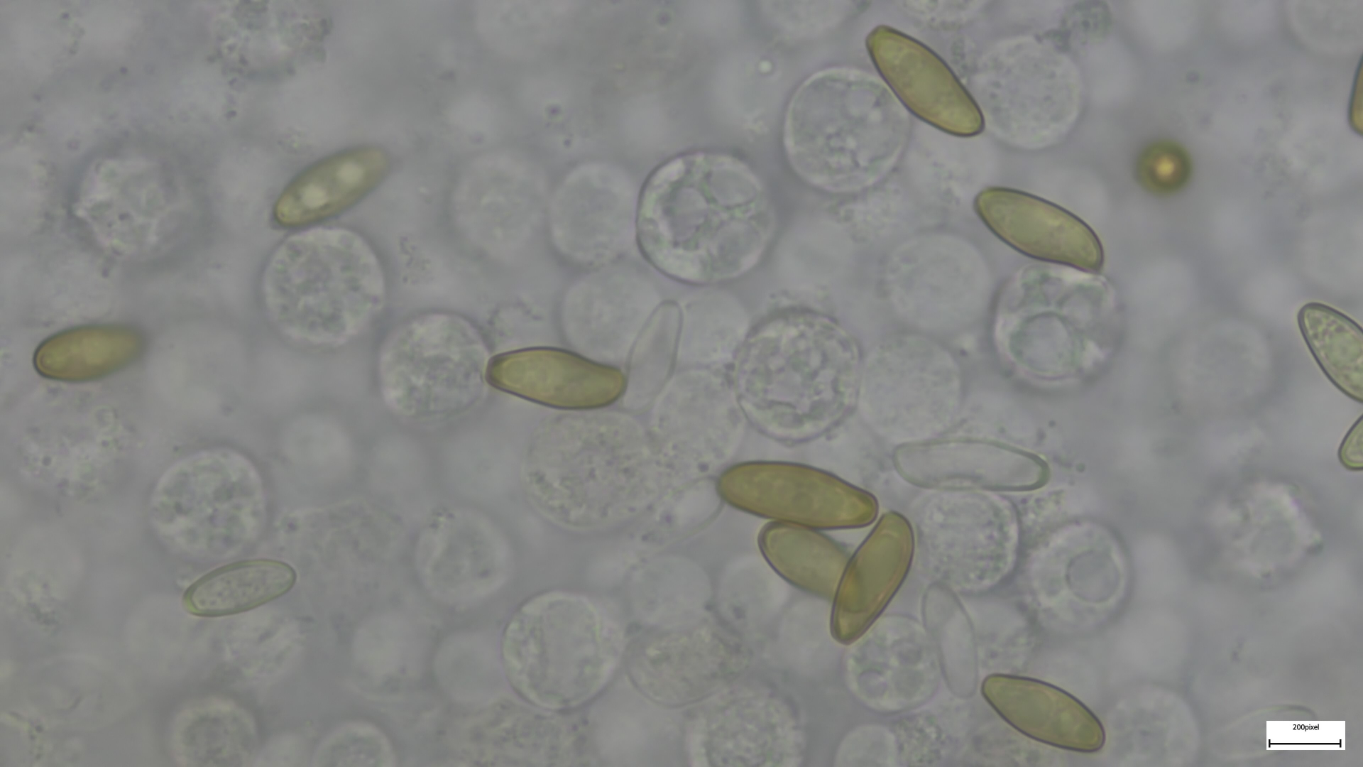 Jetzt wirds etwas kompliziert, beim nächsten Filzhut bin ich mir unsicher. Könnte das vielleicht Xerocomellus porosporus sein? Irgendwie scheinen mir die Sporen trunkat, aber er blaut ganz schön ... bin mir sehr unsicher, ob ich das alles richtig einordne. Was meint ihr?
