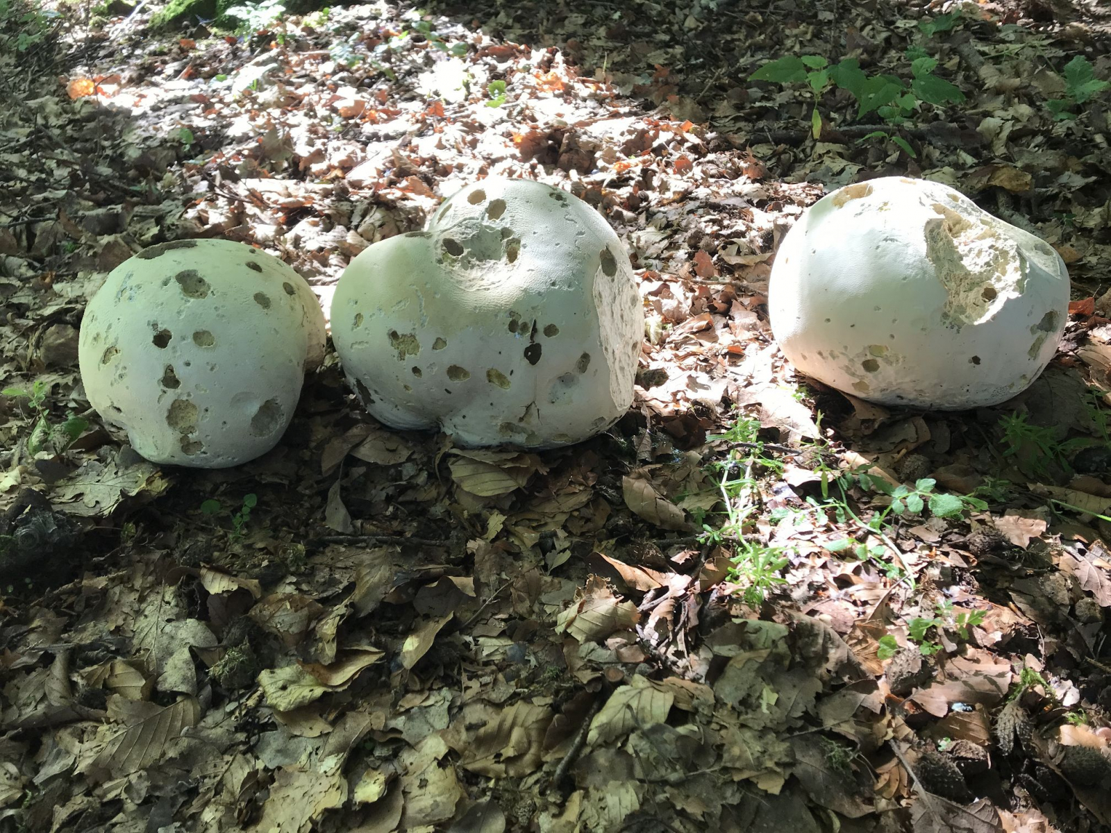 Ja, alte Riesenboviste. Es kann gut sein, dass Du die Genauso noch im nächsten Frühjahr da liegen hast, nur eben noch als morsche Hülle.