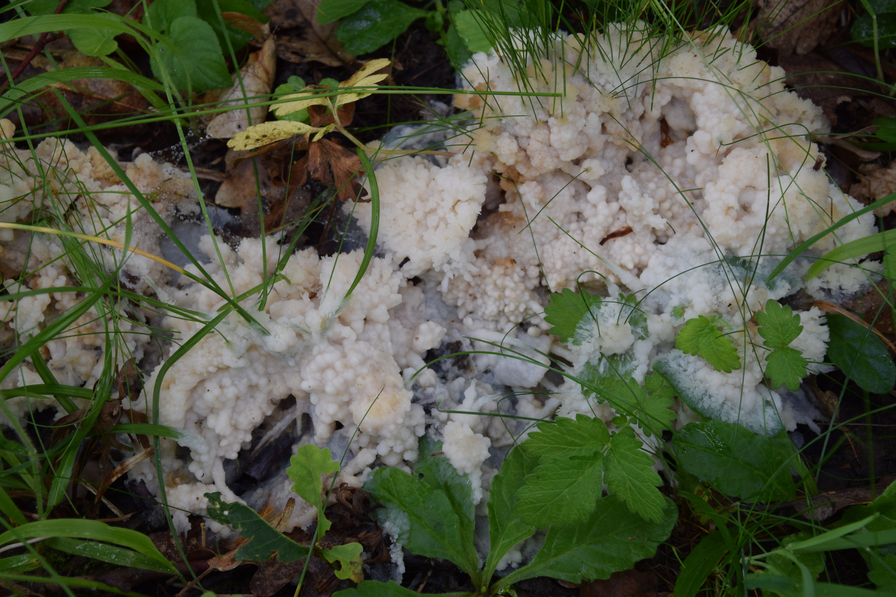 Hallo zusammen, hat jemand zufällig eine Ahnung, was dieses (bestimmt über 20 cm) große, vom Regen saftige und leicht seifig riechende Gebilde sein kann, das Gras und Blätter umwächst? Ich habe da gar keine Idee. Ich habe auch was mitgenommen, aber bräuchte schon einen Anhaltspunkt...