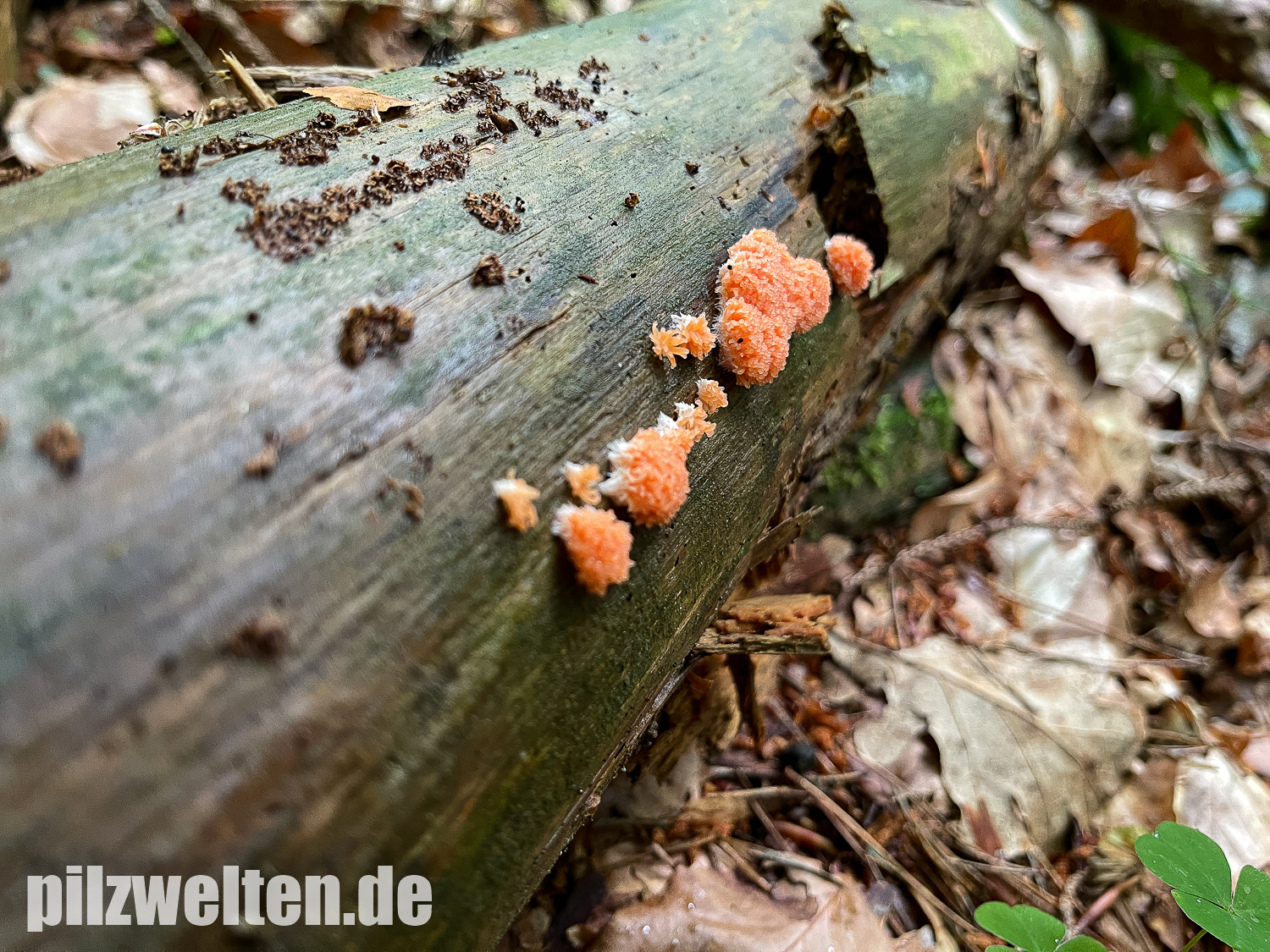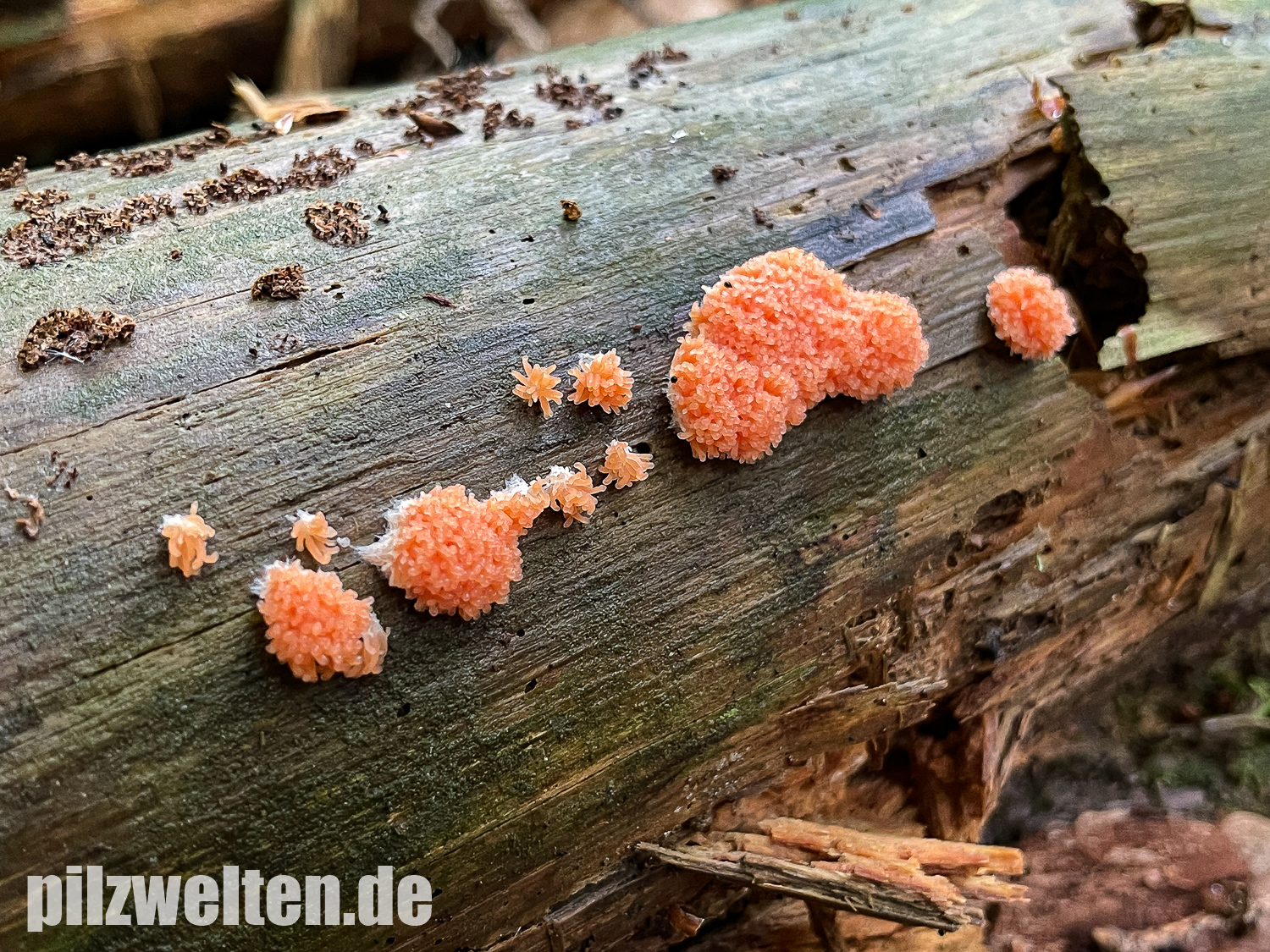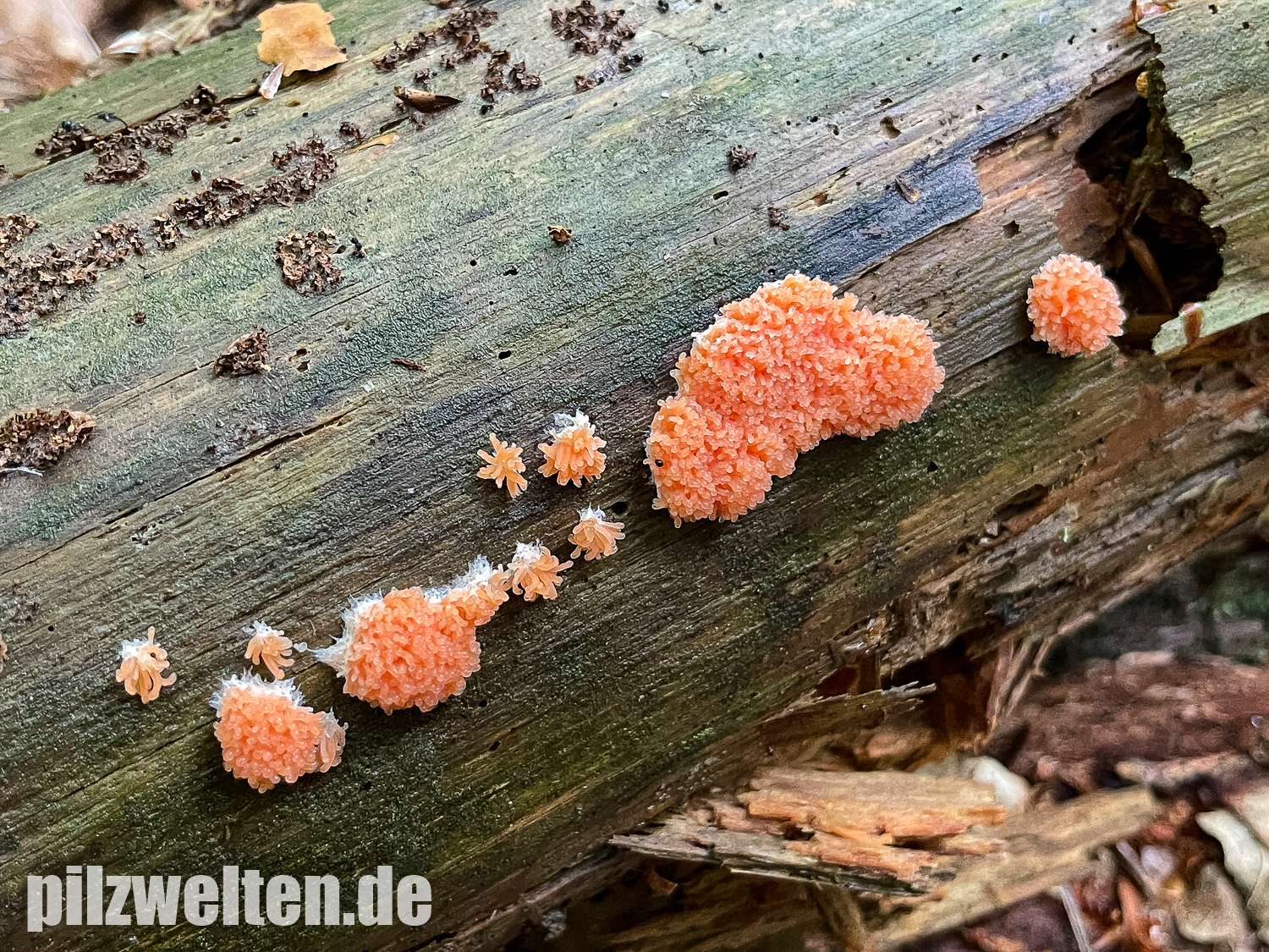 den folgenden Fund konnten wir am gestrigen Sonntag bei der Erkundung eines neuen Waldes machen. Wir dachten zuerst an Tubifera ferruginosa, aber bei genauerer Betrachtung fanden wir den länglichen (an Fadenkeulchen erinnernden) Aufbau der Fruchtkörper dann doch relativ untypisch. Allerdings sind wir bei unseren anderen Nachforschung dann auch nicht wirklich weiter gekommen bzw. haben keine Art gefunden, die besser zum Fund passt als Tubifera ferruginosa. Wir wollten deshalb einfach mal in die Runde fragen, ob jemand anhand der Bilder vielleicht eine andere Idee hat?