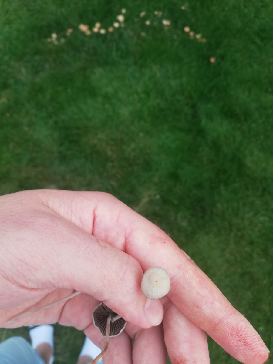 Der hier wird wahrscheinlich ziemlich schwierig zu bestimmen, wächst zahlreich im Rasen, in unmittelbarer Nähe zu einem Hexenring aus Nelkenschwindlingen. Geruch pilzig, sogar leicht ähnlich dem Nelkenschwindling. Fleisch nicht verfärbend. Wenn ein Sporenabdruck hilft kann ich den noch machen. Kann mir wer helfen?