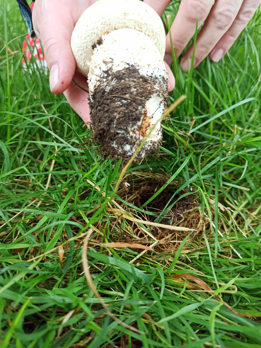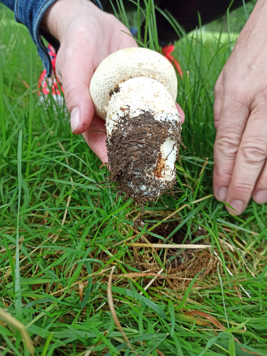 Die Champignons wurden im Südschwarzwald auf einer Wiese am Golfplatz gefunden. Sie riechen nicht. In der Nähe standen Fichten und Birken. Lamellen bei jungen rosa, Hut ist nicht schuppig.