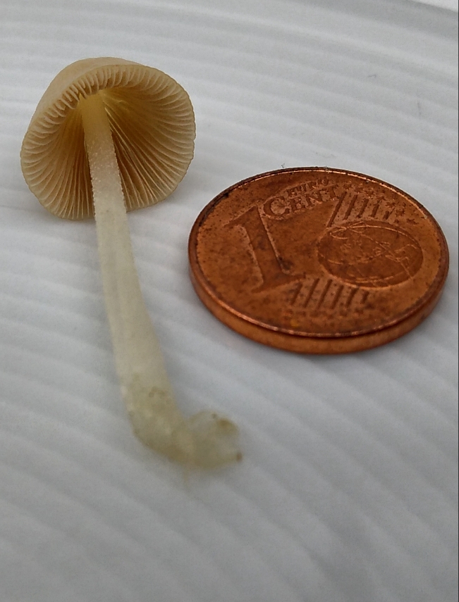 ich fand am Sonntag in einer Agrarwüste (gut gedüngter, kurz geschnittener englischer Rasen) folgendes Pilzlein. Die weiteren Angaben dazu sind leider recht mau, ich konnte keinen Fruchtkörper mitnehmen. Außerdem ist mir kein Schnittbild gelungen, weil die Fruchtkörper sehr fragil waren. Es gab mehrere Fruchtkörper, aber einzeln stehend. Der Geruch war unauffällig, am ehesten leicht wie Champignon.