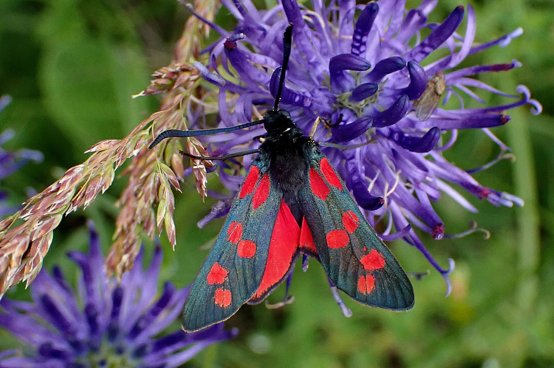 Und natürlich hatten die auch ihre Besucher, wie dieses Sechsfleck-Widderchen (Zygaena filipendulae)