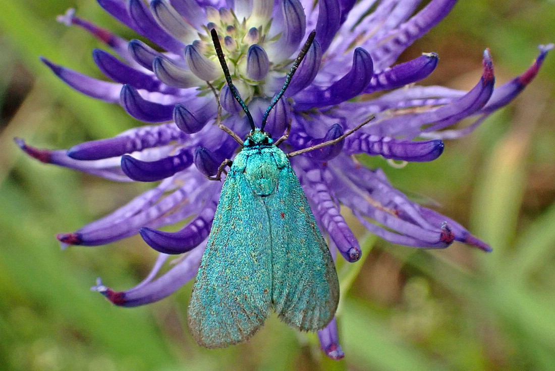 oder dieses Grünwidderchen (Art makroskopisch nicht bestimmbar).