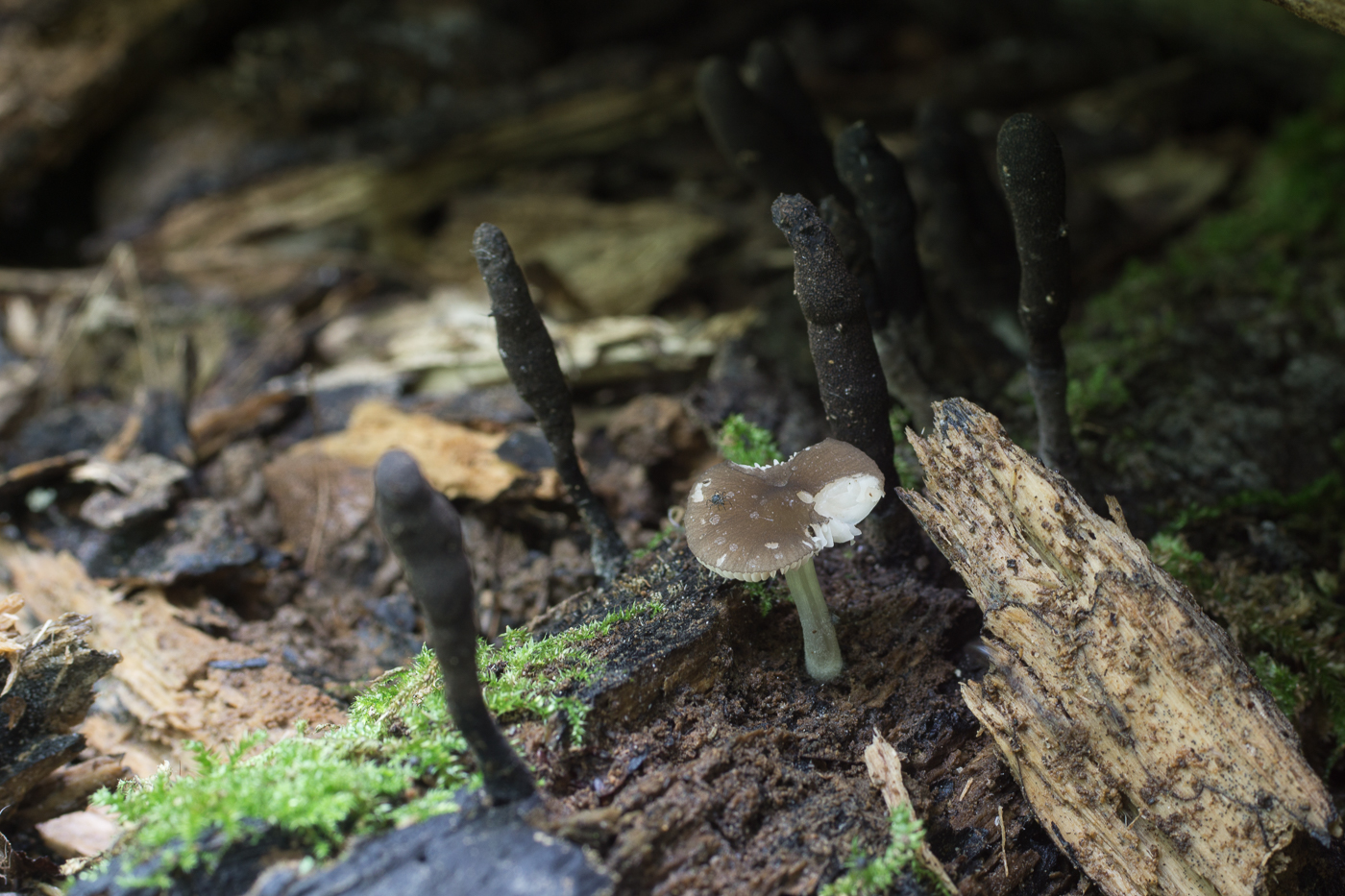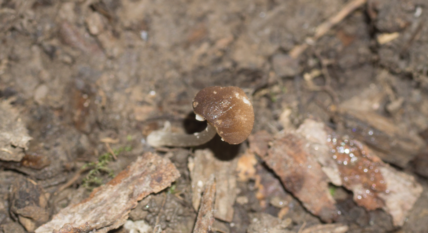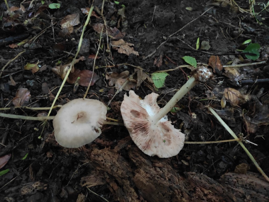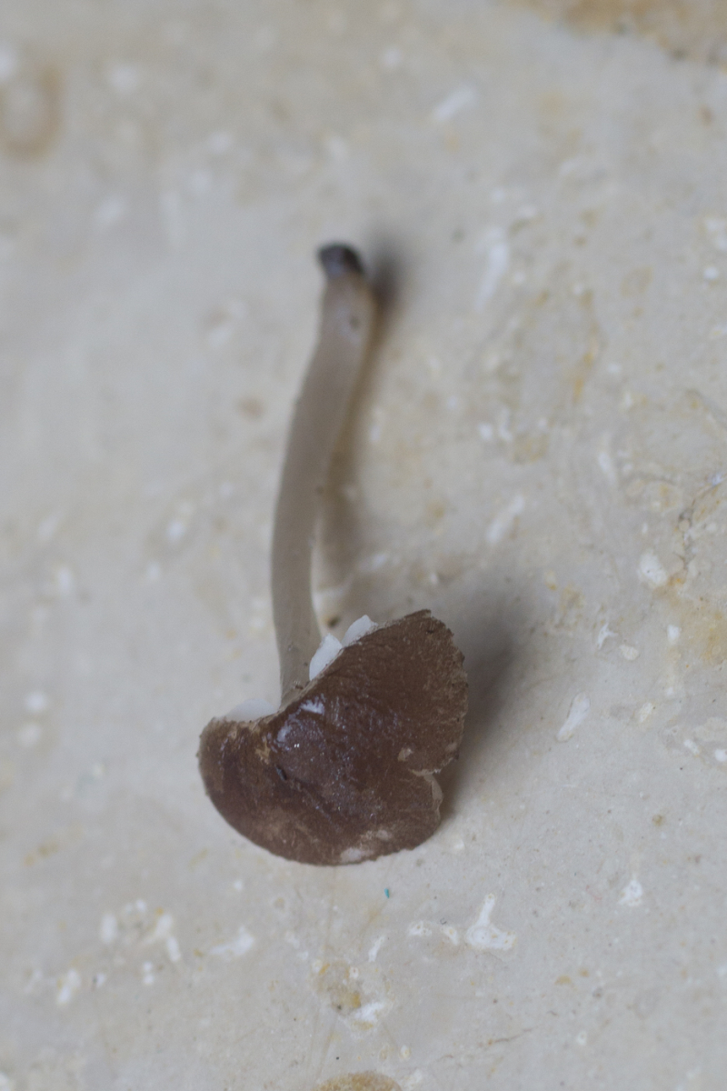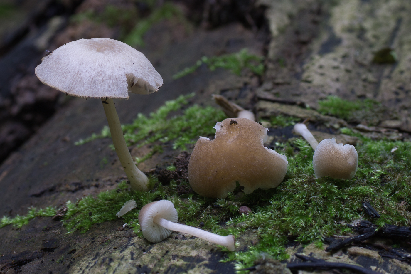 5. Bonus. Hier dachte ich erst auch kurz an einen kleinen Dachpilz, aber ich könnte mir auch Hydropus oder so vorstellen. Oder es ist was ganz anderes... Leider nur ein angefressenes, winziges Exemplar. Er hat nur dünn abgesport, aber das ist für mein Daherhalten eher ein weißer Abwurf. Habe hier aber wenig Hoffnung auf Klärung. Die Lamellen haben über Nacht einen gelblichen Schimmer bekommen.