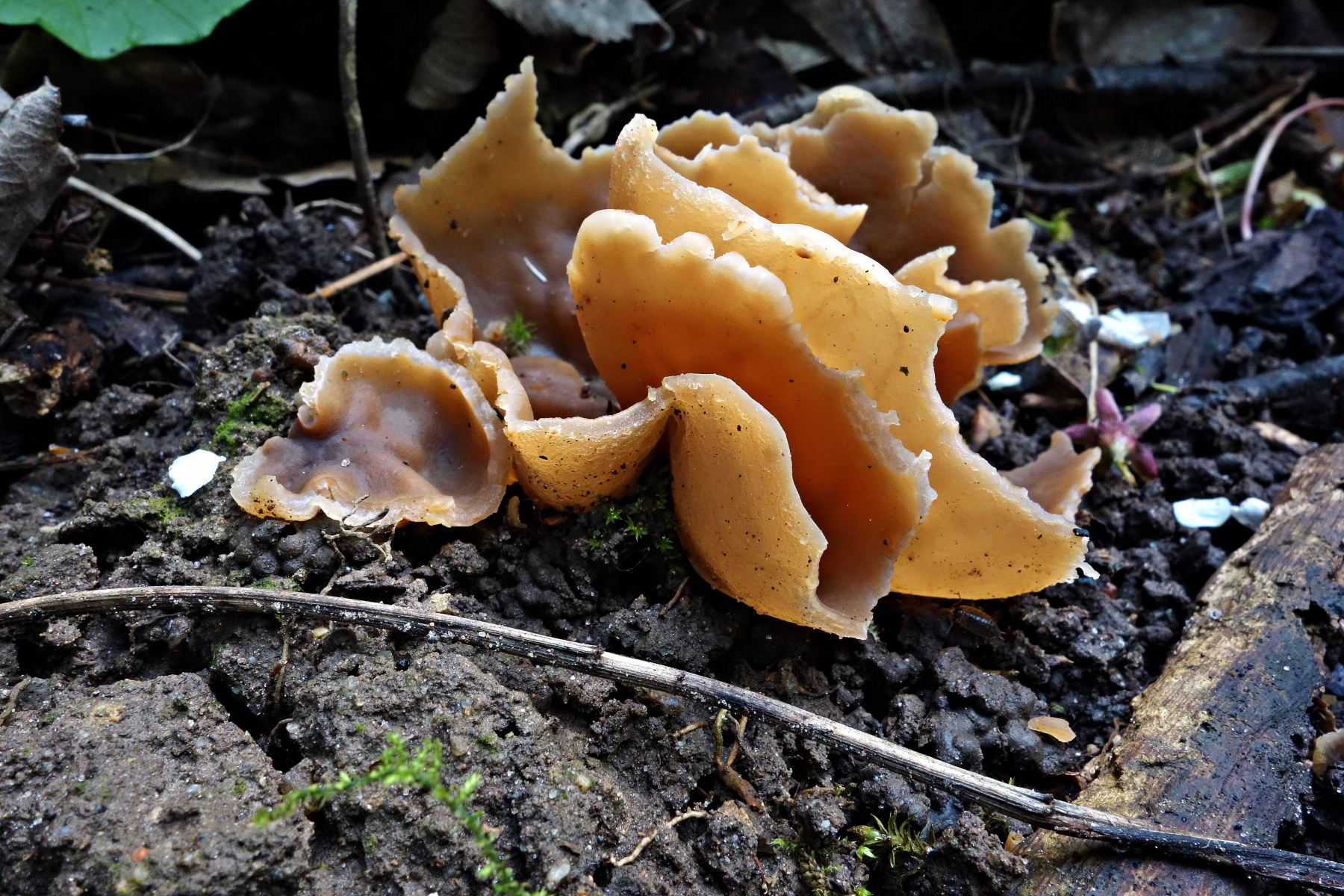 1a Am Gölmbach : habe diesen Pilz bei uns zum ersten mal gefunden - vielleicht der Gelbe Wachsbecherling Peziza cerea .