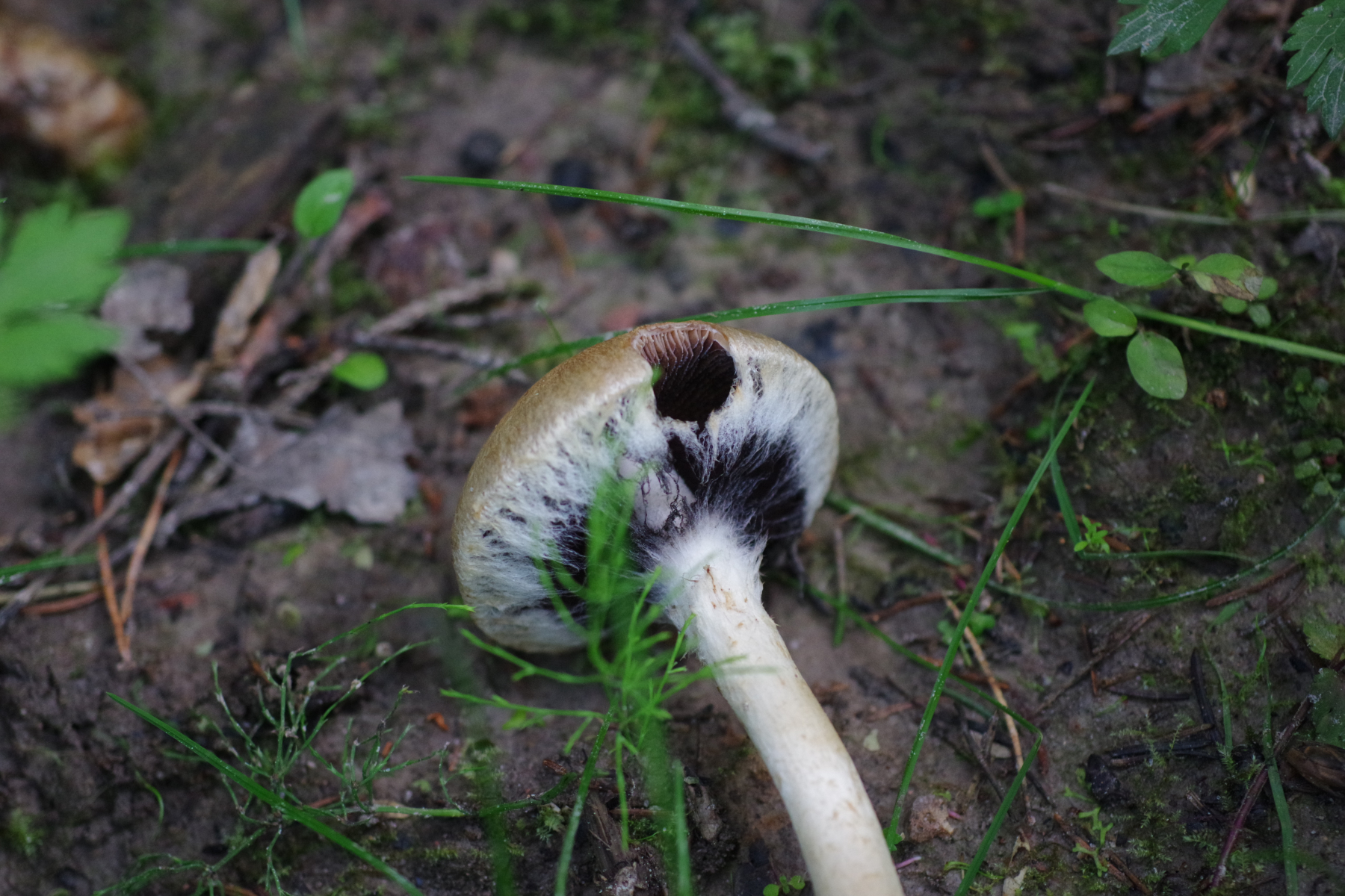 an einem schlammigen Weg habe ich diesen Pilz mit einem sehr ausgeprägten Schleier gefunden. Ich vermute Lacrymaria lacrymabunda (im Vergleich zu dem hier von Maria Dunkelbrauner Pilz mit dunkelbraunen Lamellen - ich habe nicht die Spur einer Ahnung gezeigten frischen Pilz).