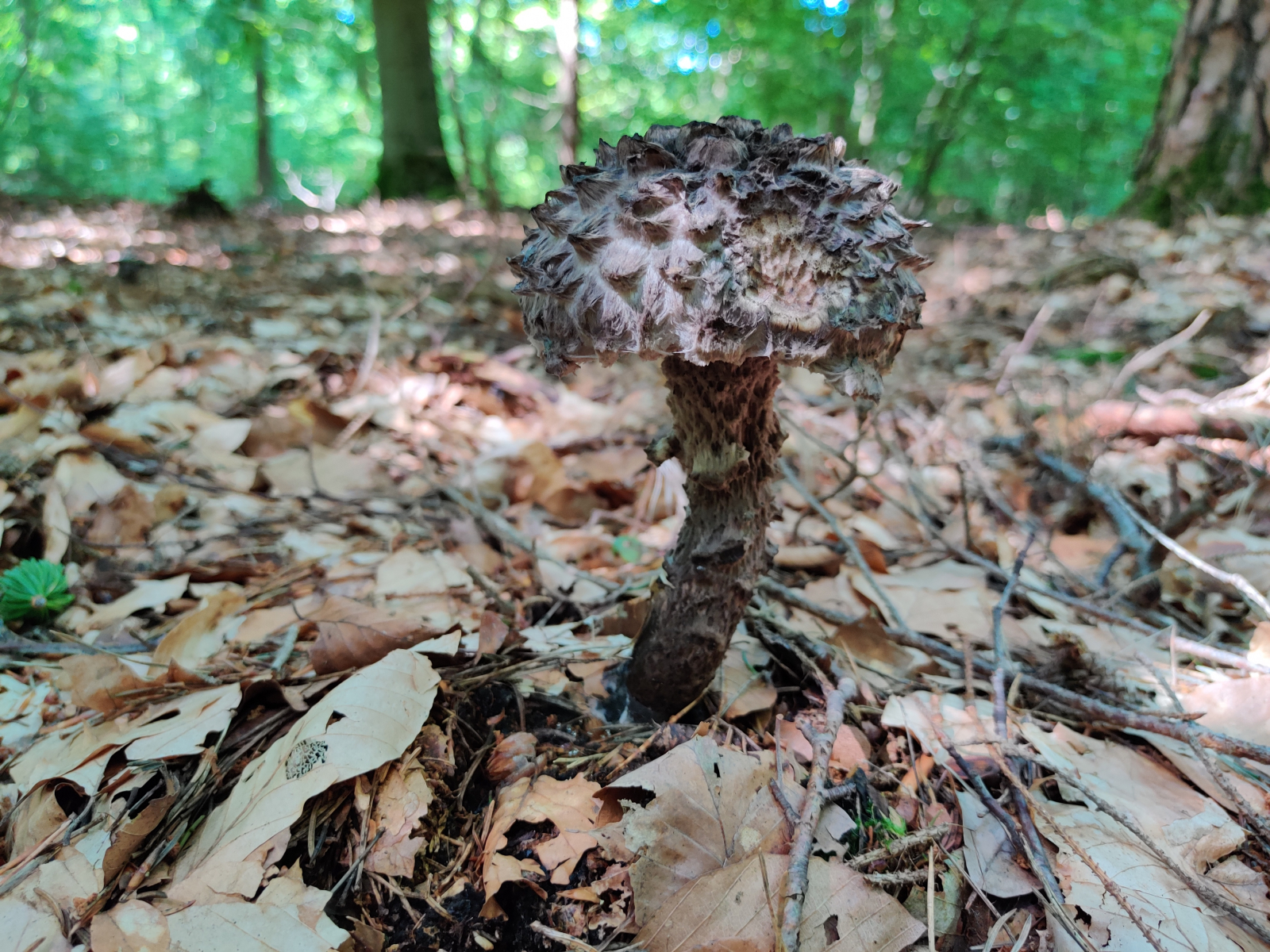 Außerdem gab es noch diesen schönen Fund: Strubbelkopfröhrling (Strobilomyces strobilaceus)