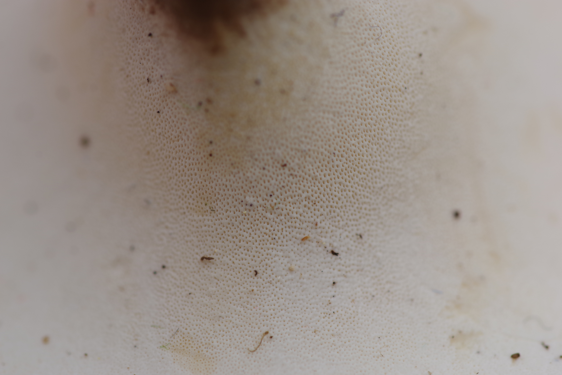 gestern abend habe ich von einer Moorinsel diesen Porling mitgebracht. Hat auf den ersten Blick Ähnlichkeit mit dem hier (Ein schwarzstieliger Porling), ist allerdings viel feinporiger und die Oberfläche weniger filzig. Auf Grauerlenästen. Geruch schwach, Geschmack mild. Poren 6-8 pro mm, wobei die Poren zum Rand hin kaum mehr wahrnehmbar sind, auch nicht mit Makroobjektiv, das könnte natürlich am Wachstum liegen und später etwas anders aussehen.