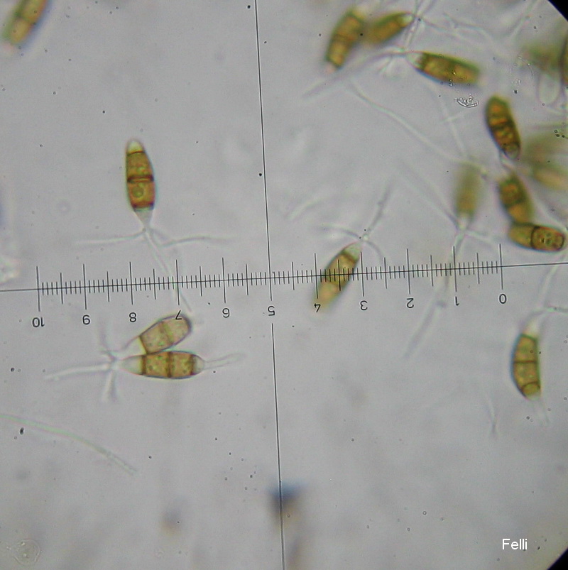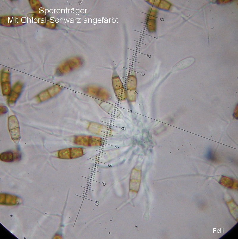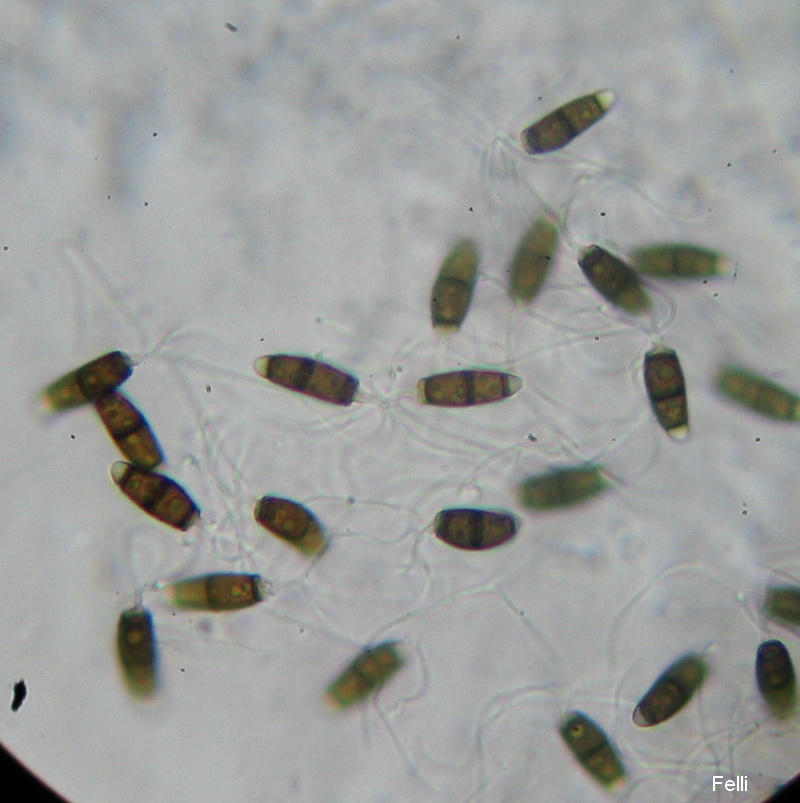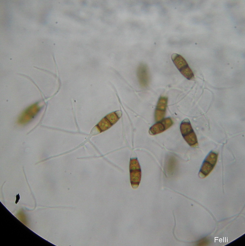 Sporen: 17-20 x 6-7µ, 3-fach septiert. die Endzellen hyalin, und die verzweigten Anhängsel