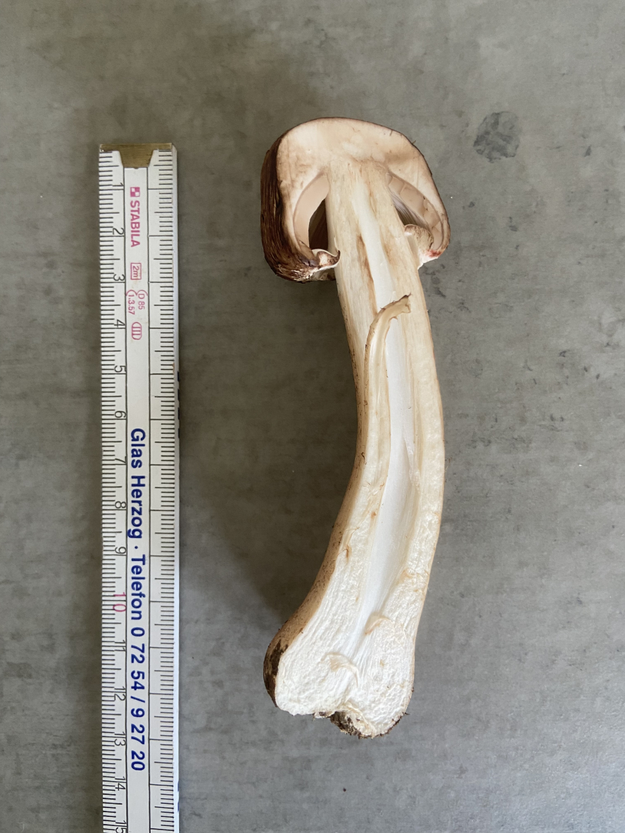 Initial dachte ich an Agaricus Augustus. Da er aber so stark rötet, bin ich dann davon schnell abgekommen.