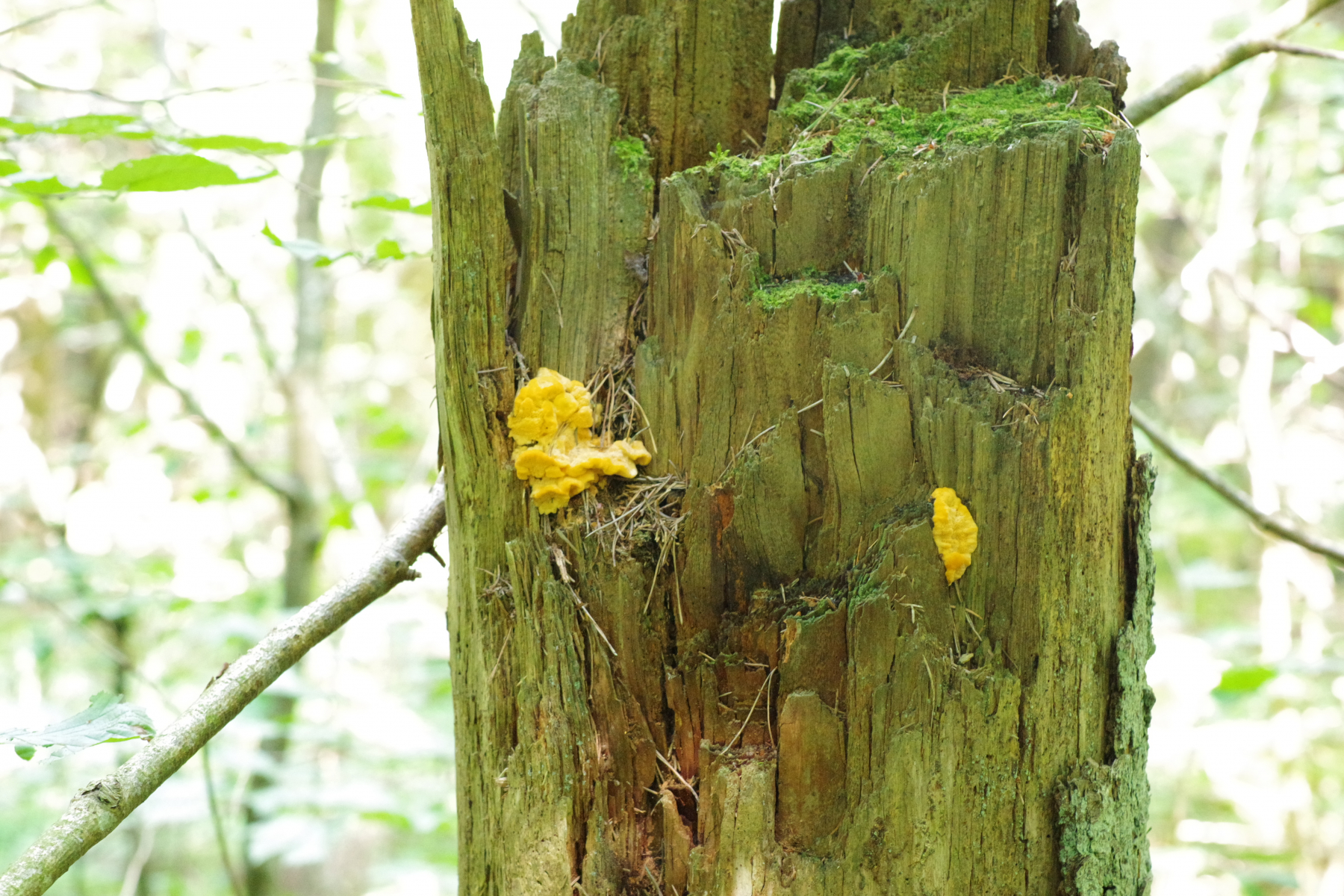 3) ein grelloranger Schleimi an Fichtenstumpf