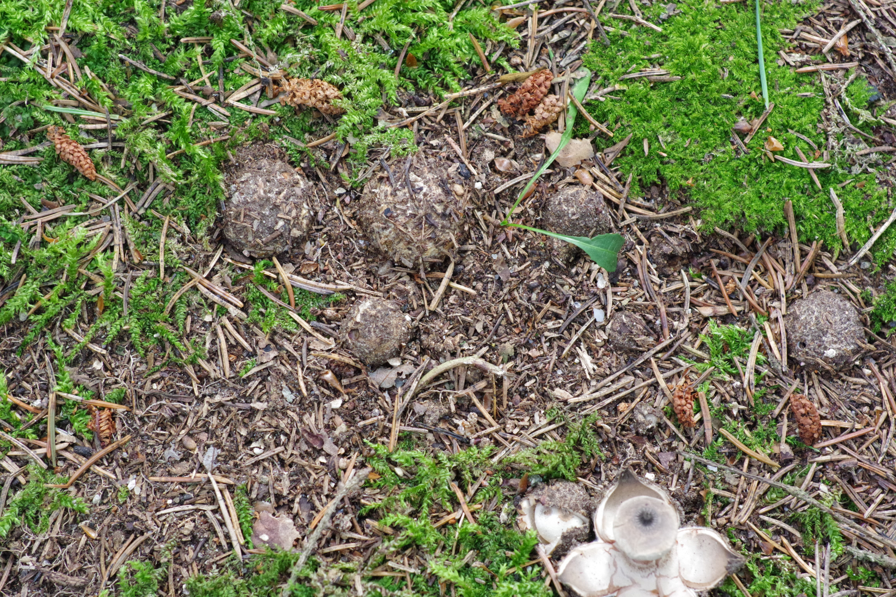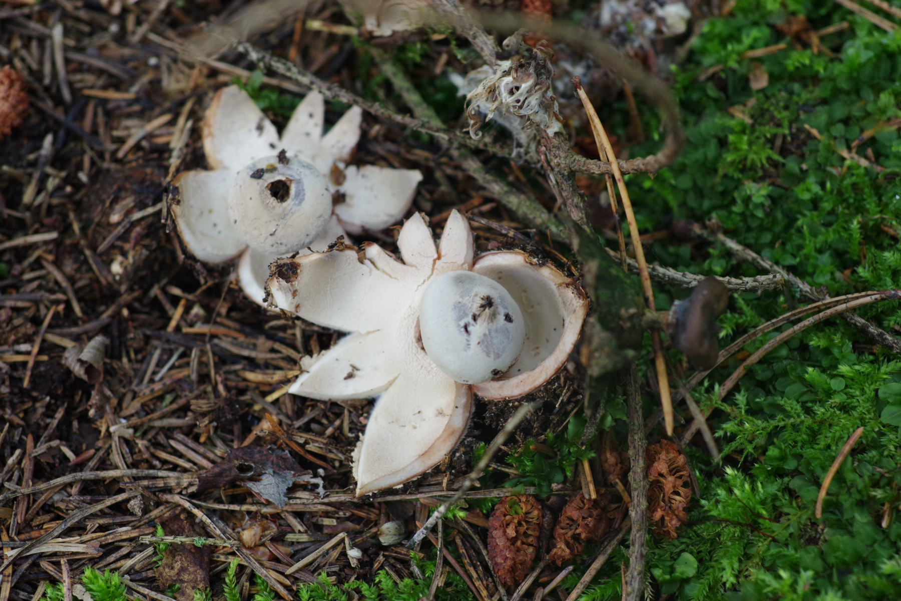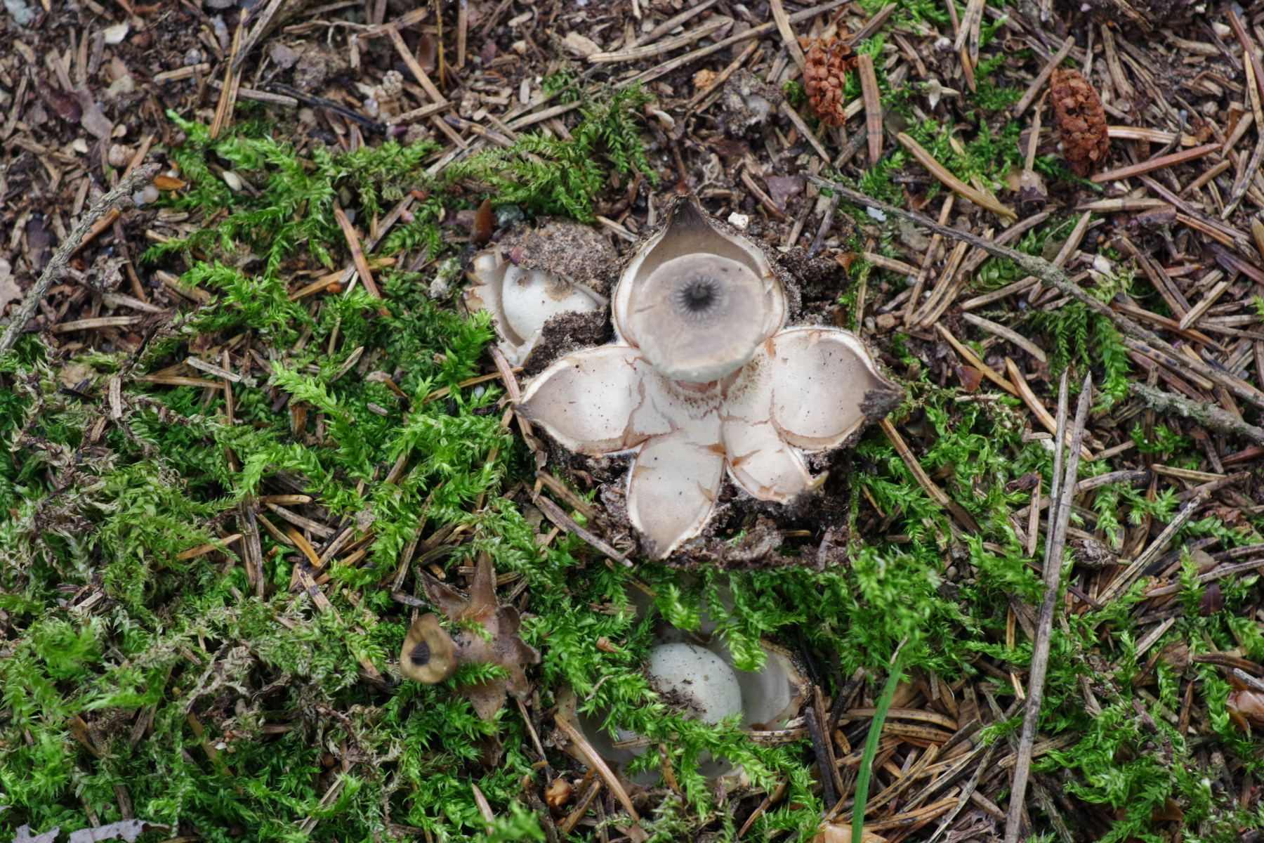 1) die ersten frischen Erdsterne des Jahres, G. striatum an bekannter Stelle neben vorjährigen