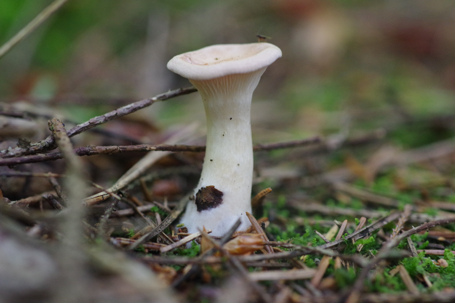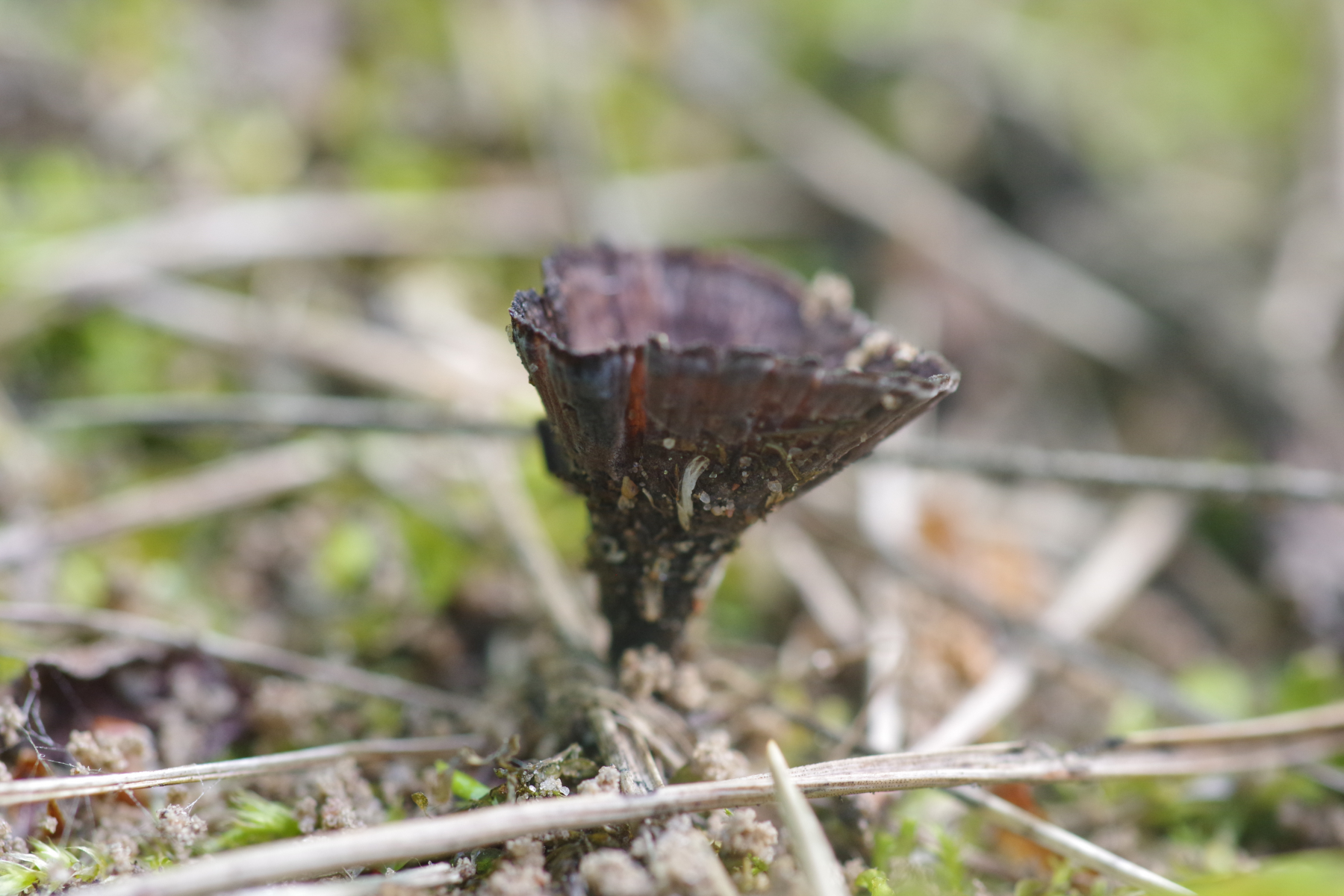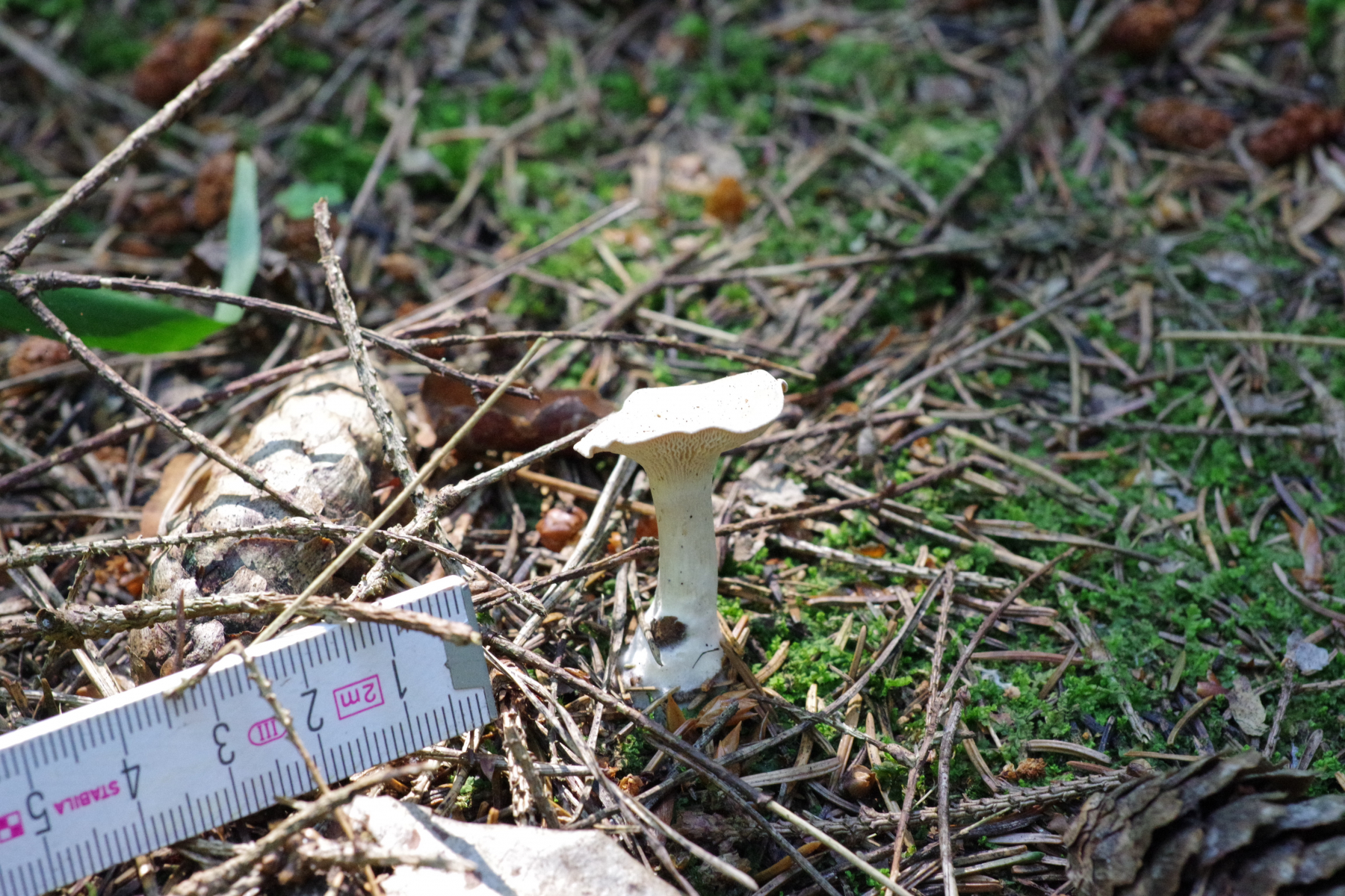 4) gleich neben dem schon oft gezeigten Plectania melastoma, der immer noch in Form ist, diese Becher, die wie Humaria hemisphaerica aussehen. Einige in weiß, was sich möglicherweise mit dem in der Wikipedia genannten Hypomyces stephanomatis in Verbindung bringen lässt.