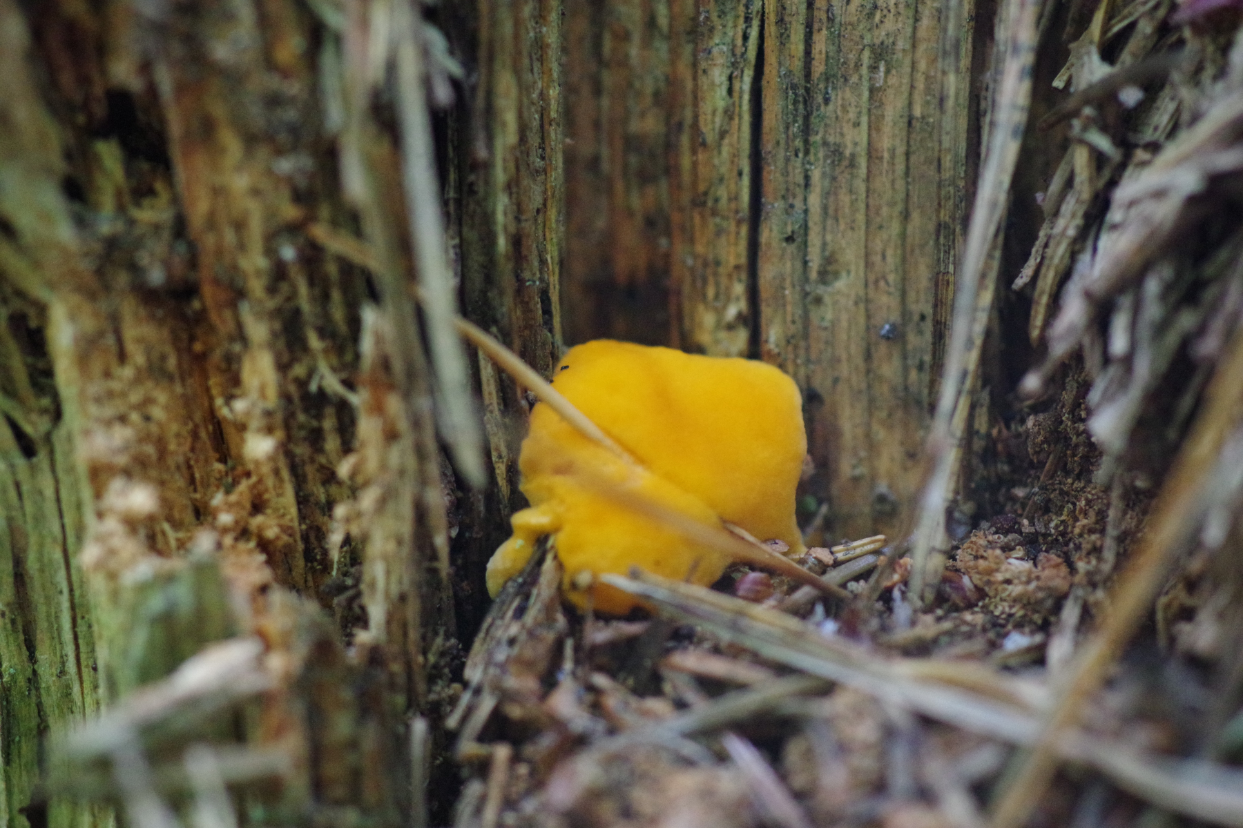 3) ein grelloranger Schleimi an Fichtenstumpf