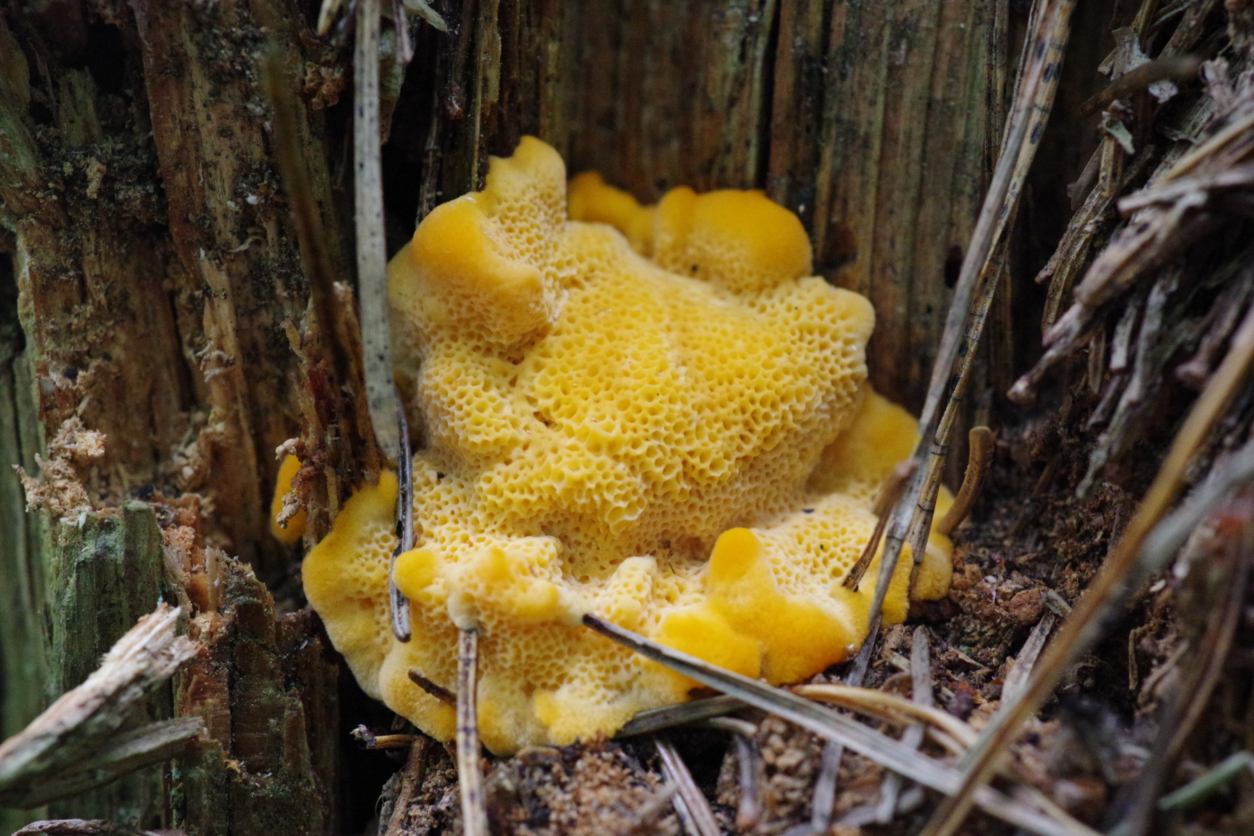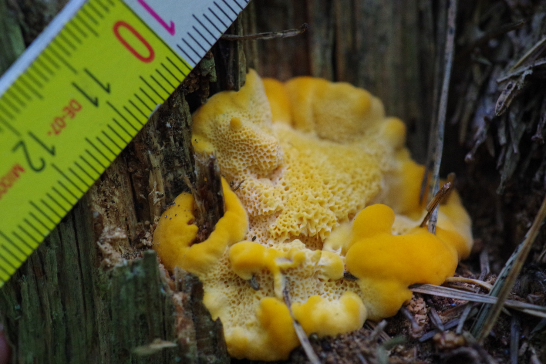 Bei dem gelben Porling könnte man mal abwarten, ob das nicht nochwas Ausgefalleneres ist. Antrodiella citrinella vielleicht - wobei da die Poren eigentlich doch zu grob sind.