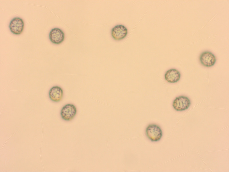 Sporen um 7.5-9 x 6.5-7.5 µm, netzartig, Ornament bis 1 µm lang